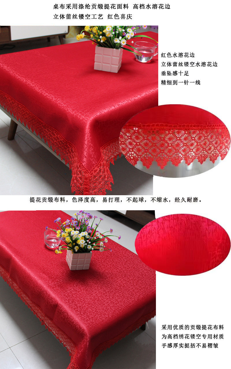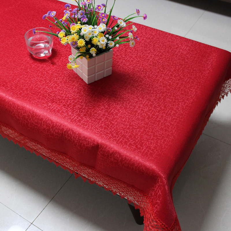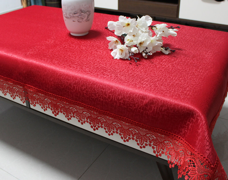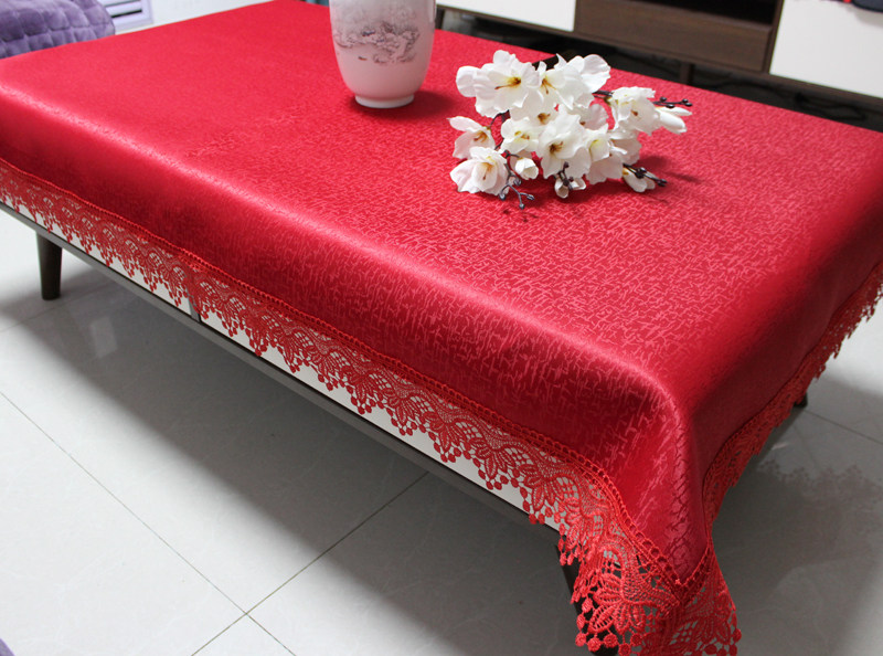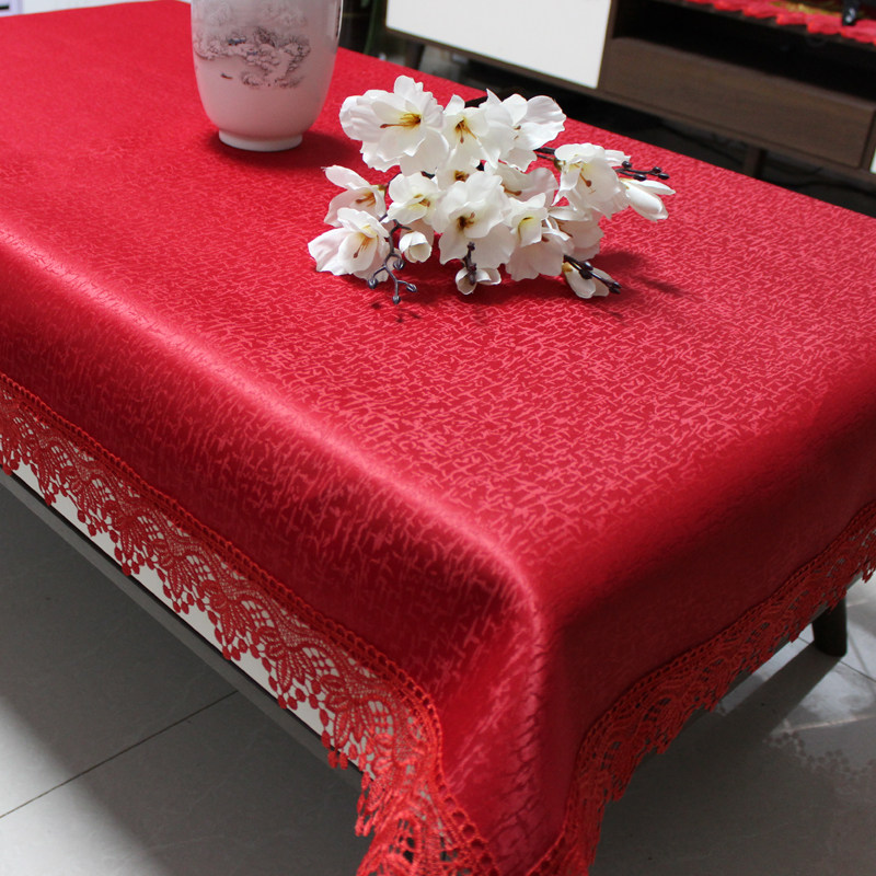 red jacquard festive rectangular tablecloth household coffee table fabric tablecloth wedding knot lace cover cloth