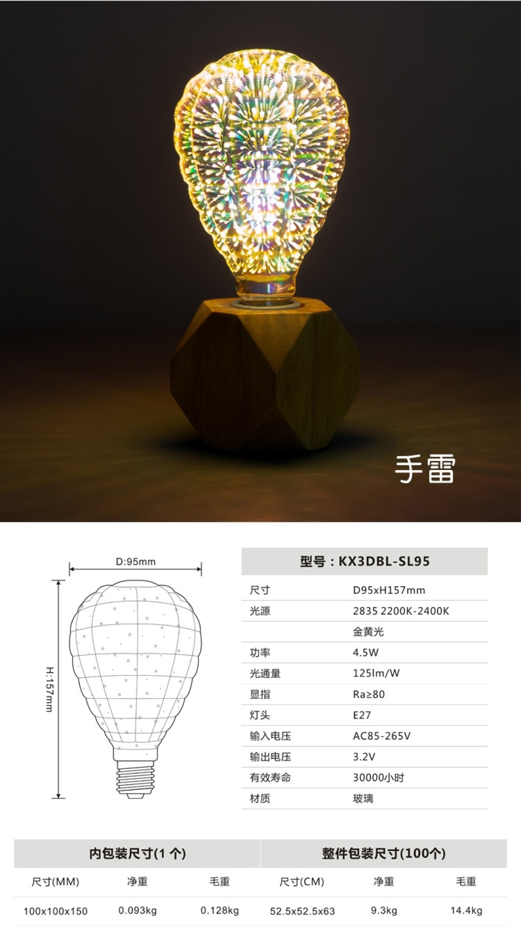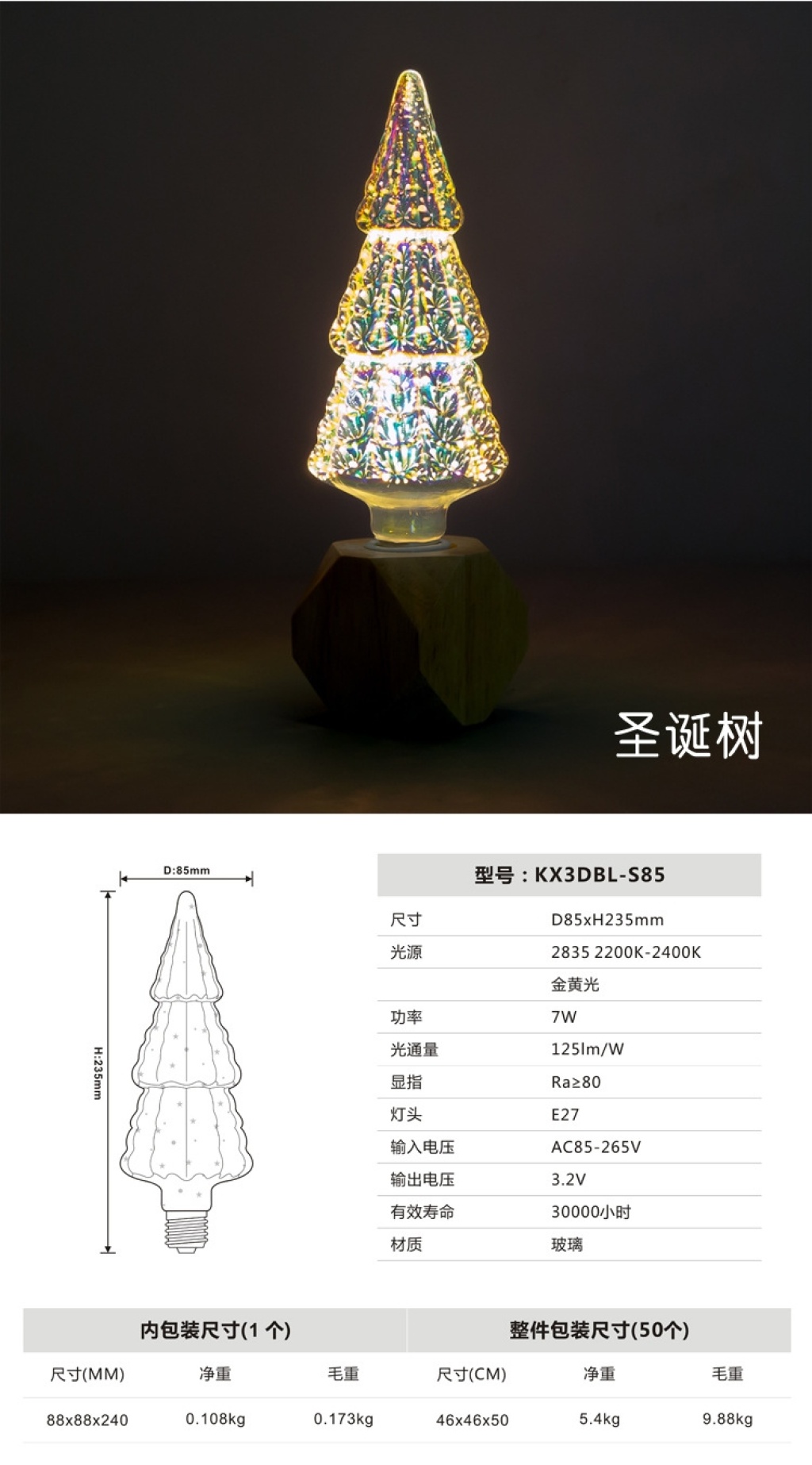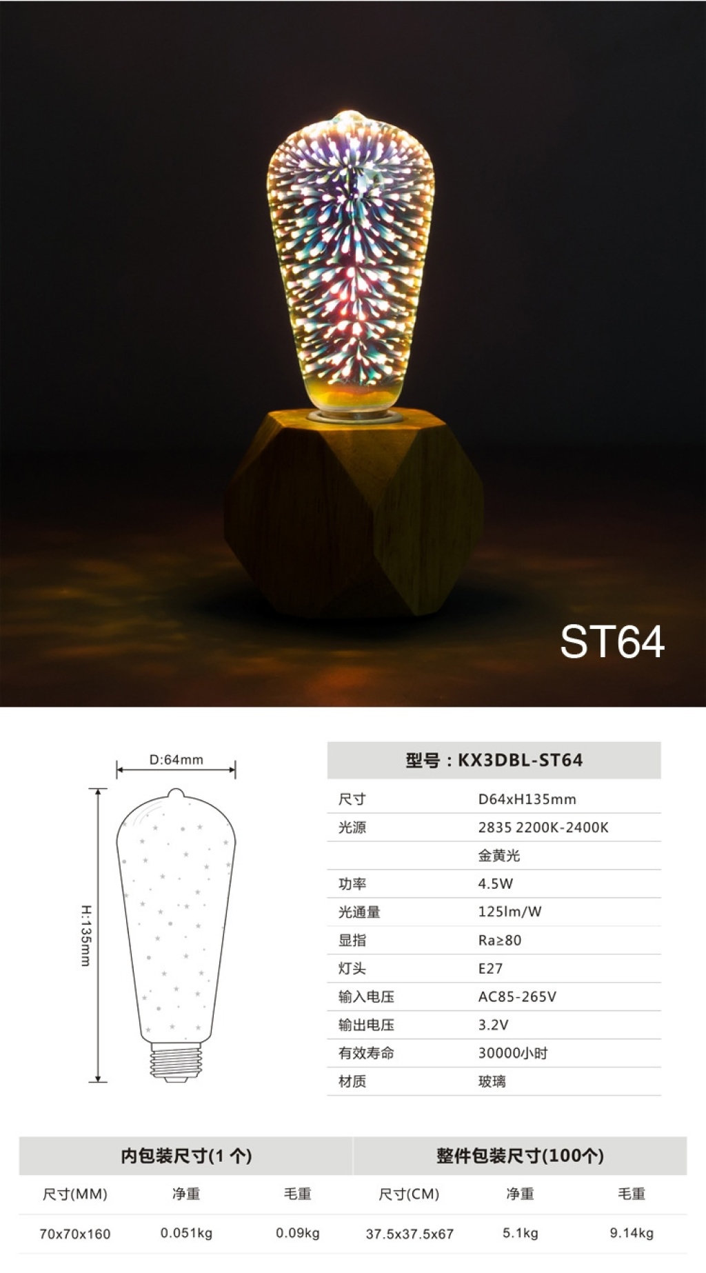 led3d fireworks e27 bulb a60g80 95 125 st64 five-pointed star christmas tree and other styles