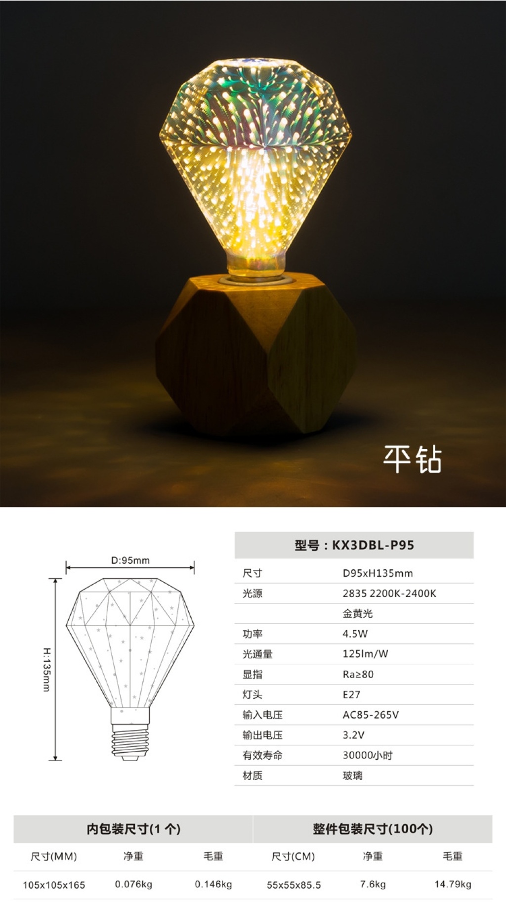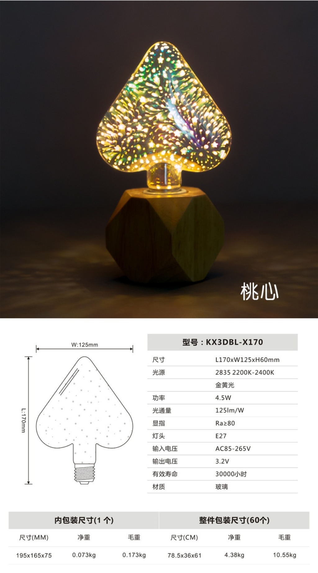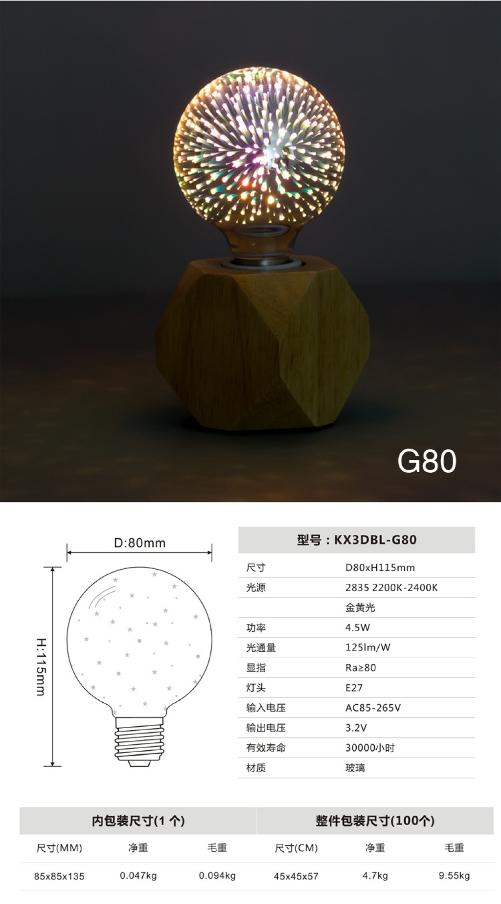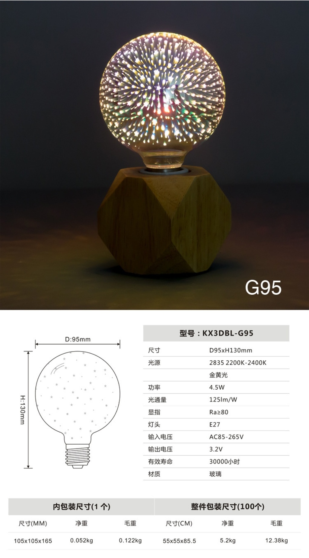 led3d fireworks e27 bulb a60g80 95 125 st64 five-pointed star christmas tree and other styles