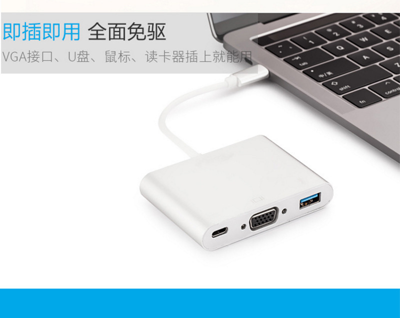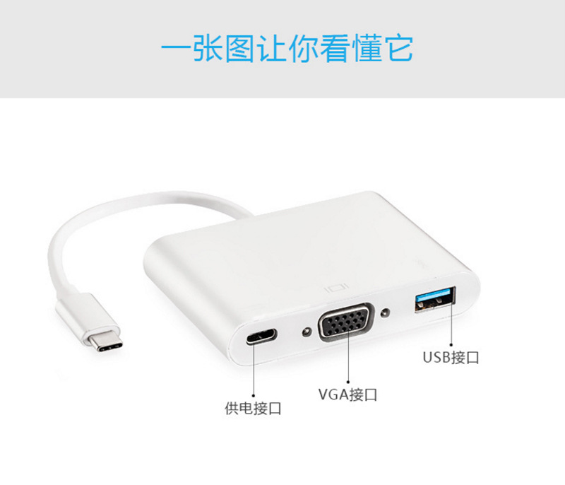 Product function: This product is a portable multi-function conversion wire, which is converted into (PD + data + VGA video) multi-function application through digital signal input with USB 3.1 Type C(DP mode) interface.