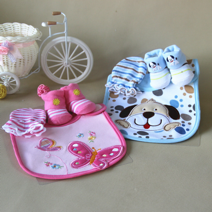 Gloves, socks, and bib set