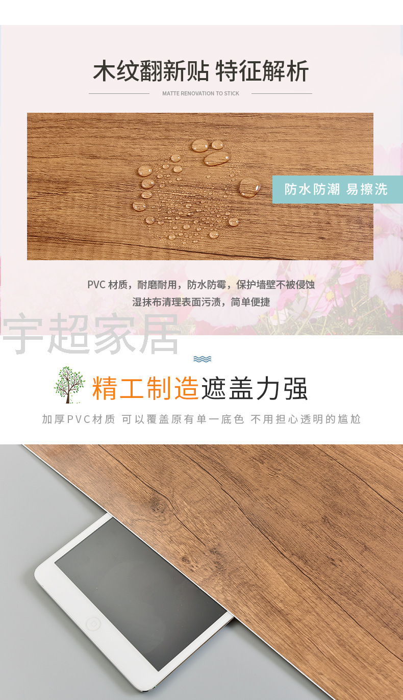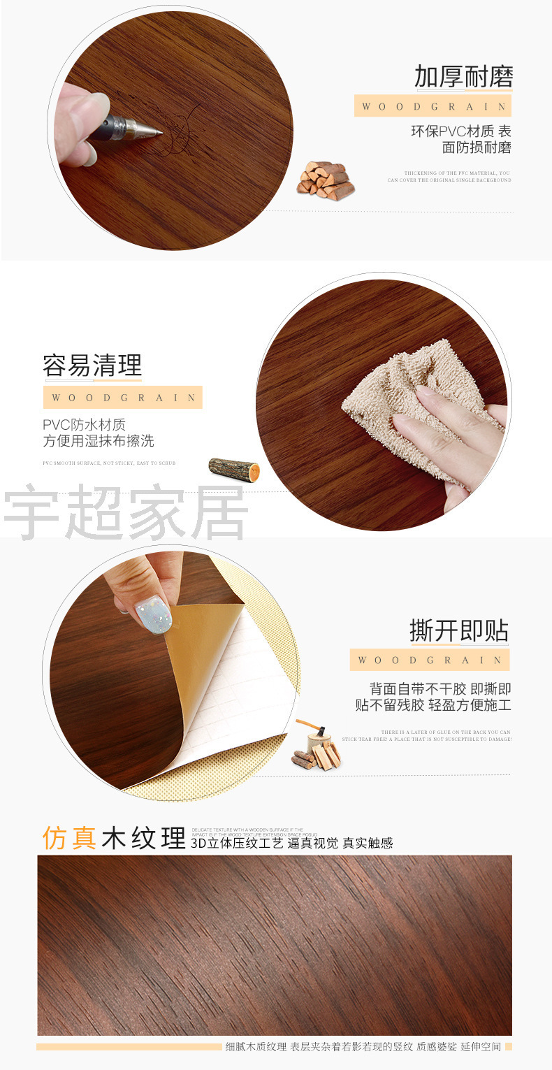 Thickened Wood Grain Sticker Wardrobe Door Sticker Desktop Furniture Refurbished Stickers Wooden Cabinet Decorative Cabinet Waterproof Self-Adhesive