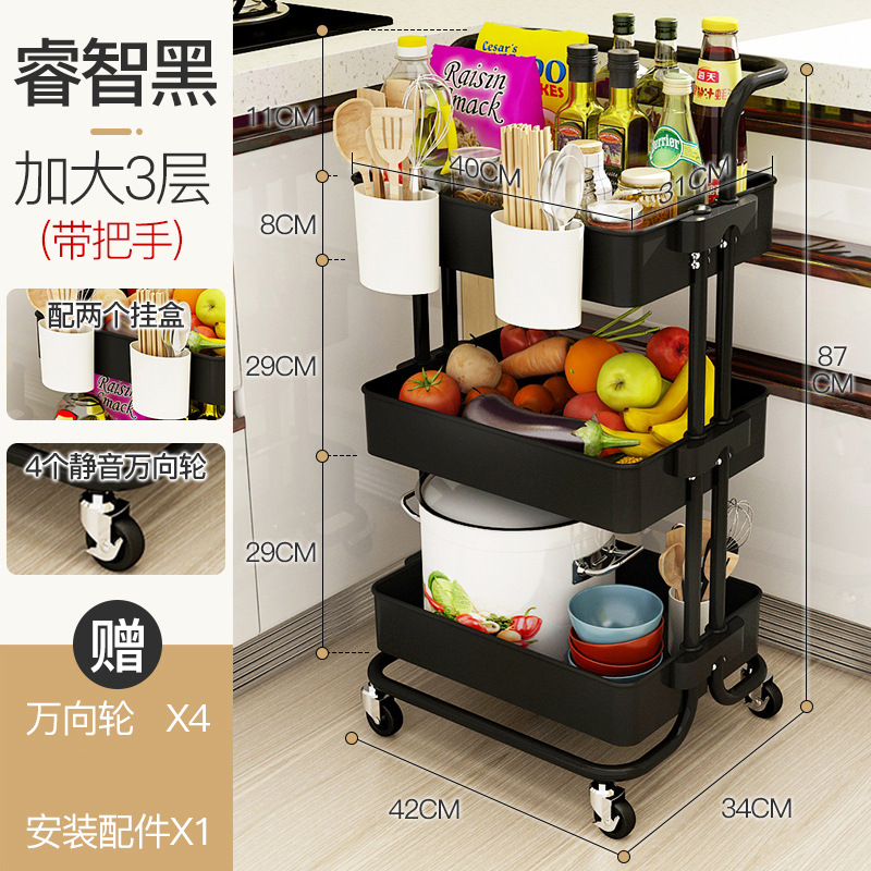 black three-layer armrest cart