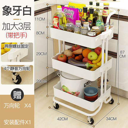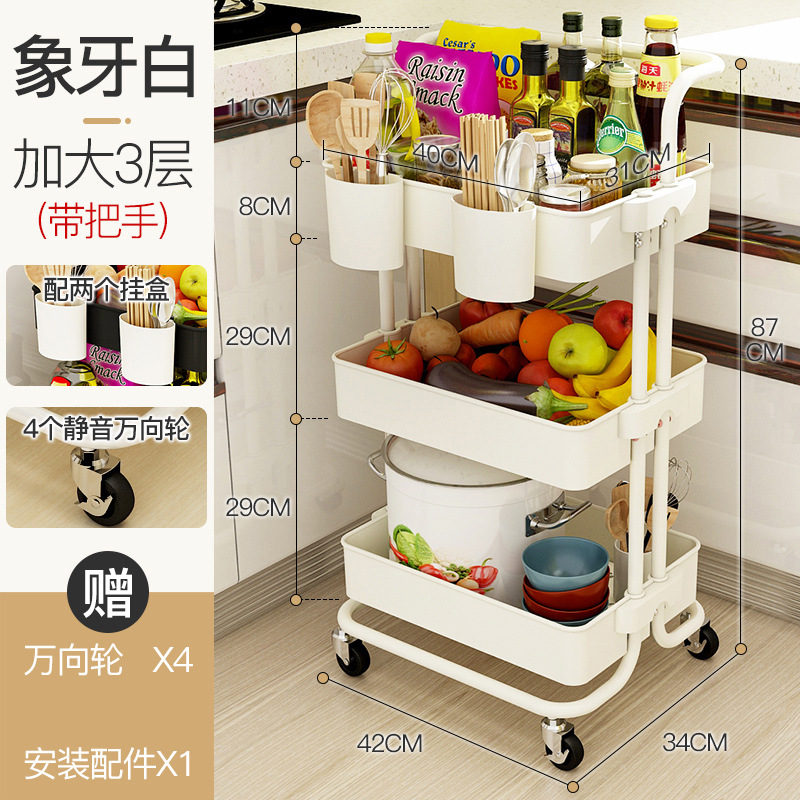 white three-layer armrest cart