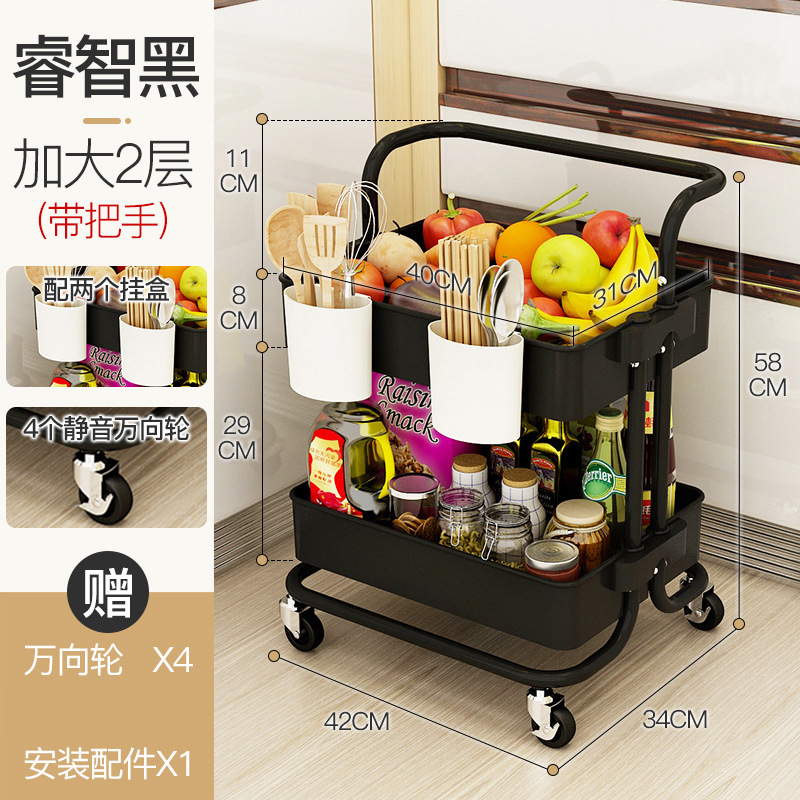 black two-layer armrest cart