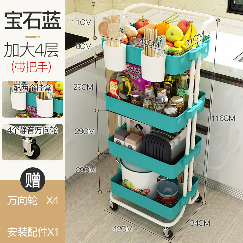 blue four-layer armrest cart + two wall-mounted box