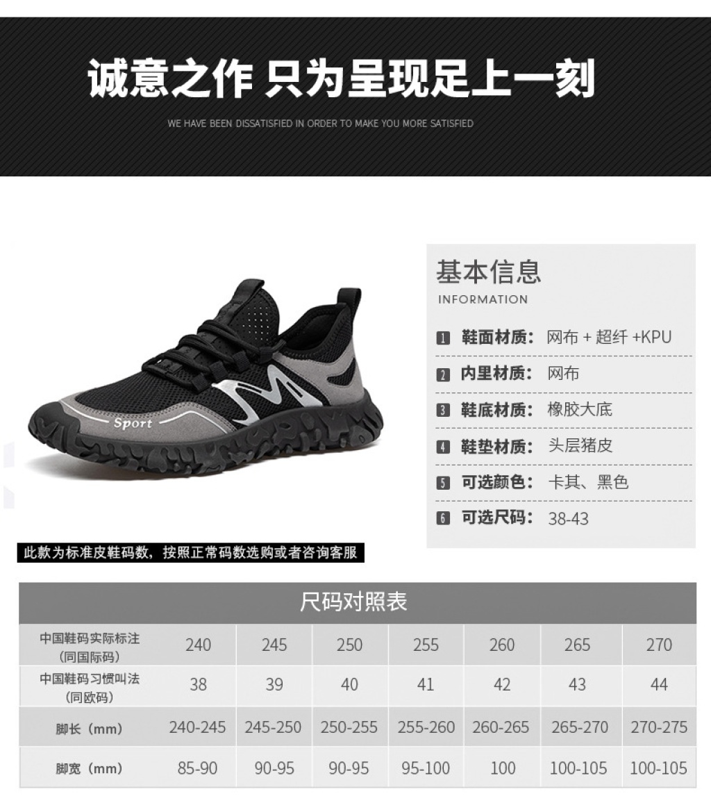 Standard sizes available in 38, 39, 40, 41, 42, 43, and 44. Please note the color and size when ordering, or contact customer service for further instructions.