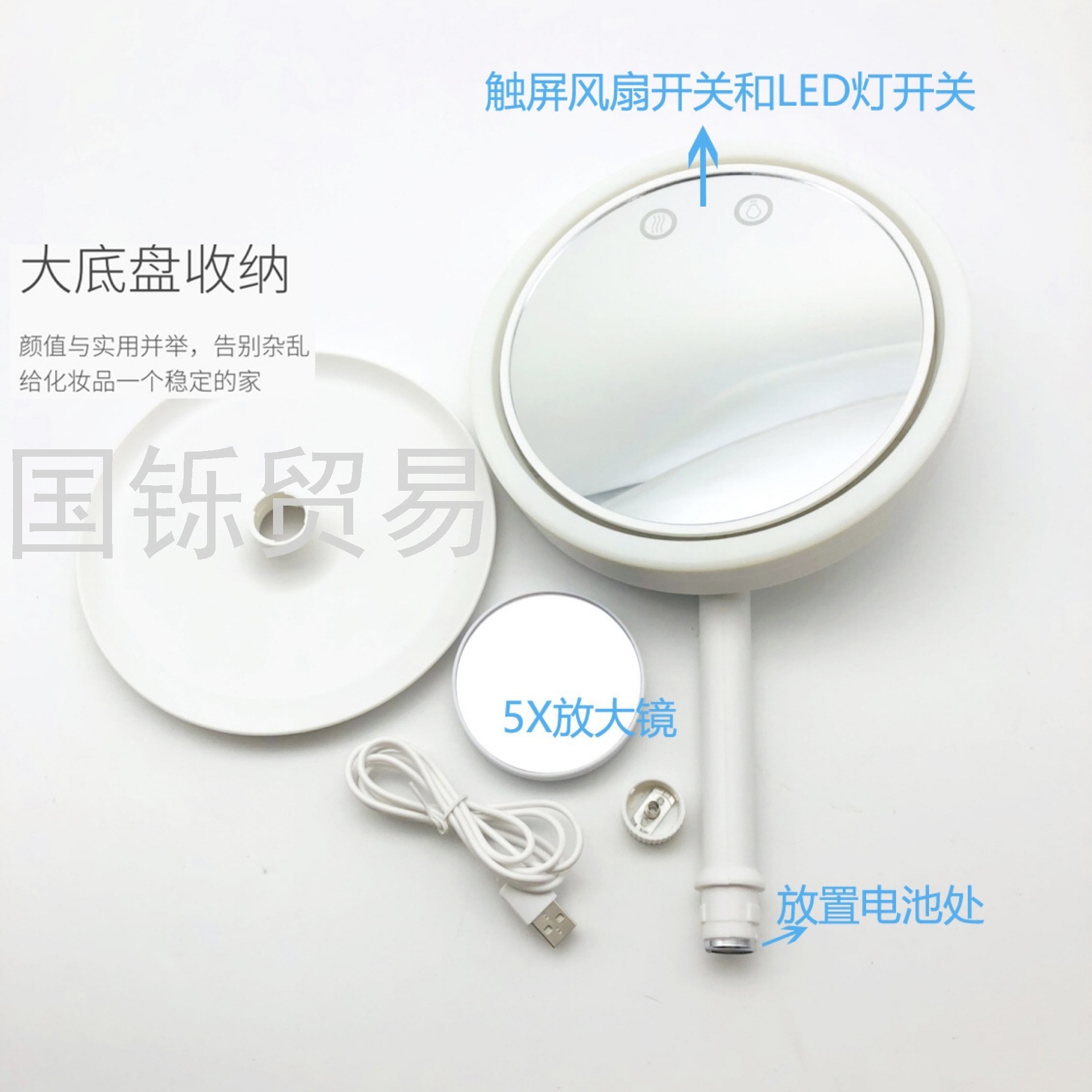 Led Three-in-One Makeup Mirror with Light Fill Light Dormitory Table Mirror USB Fan Portable Girl Cosmetic Mirror Desktop