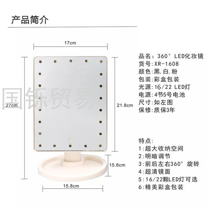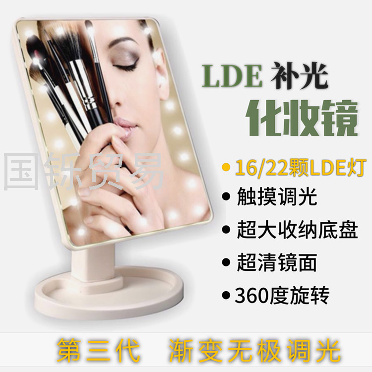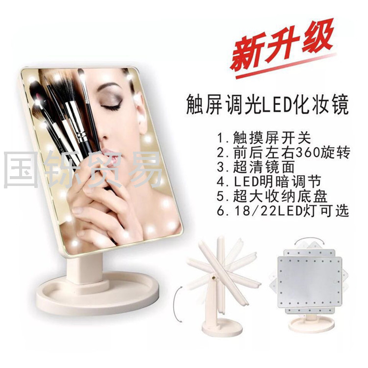 Touch Sensing Led Desktop Storage Makeup Mirror 16/22 USB Power Supply with Light 360 Rotating Portable Mirror