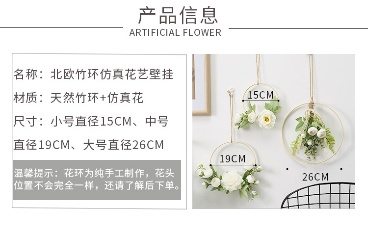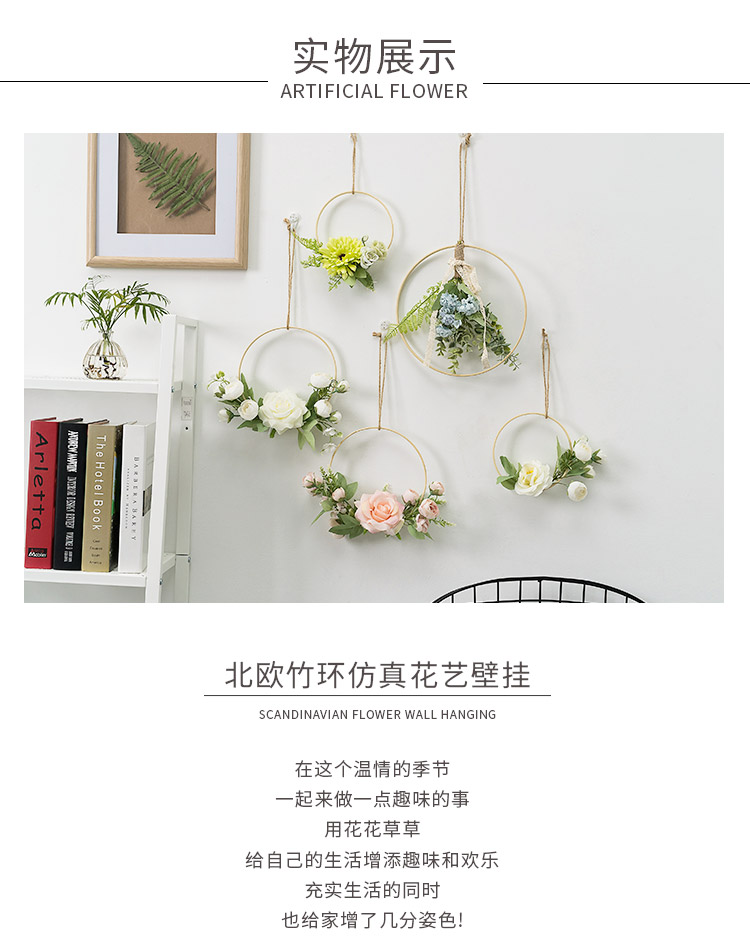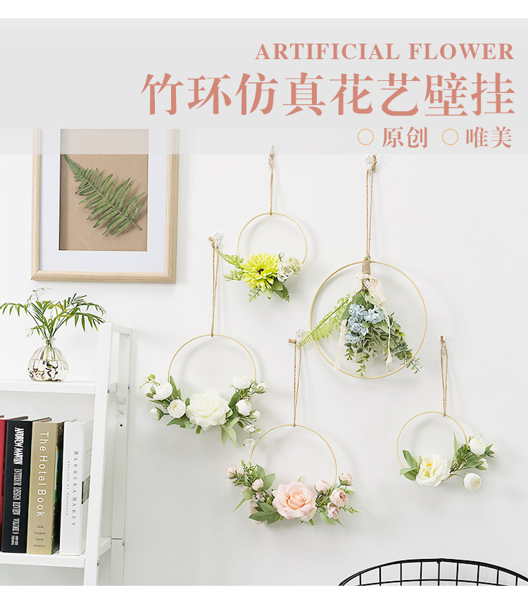 European Milk Tea Shop Wall Decoration Pendant Creative Living Room Bedroom Room Wall on the Wall Wall Decoration Bamboo Ring Flower