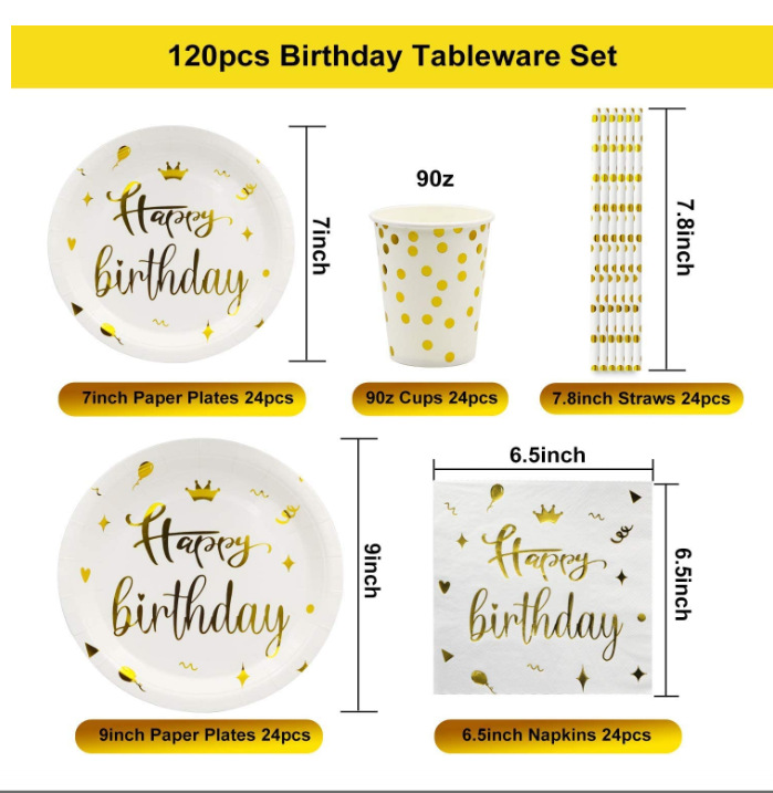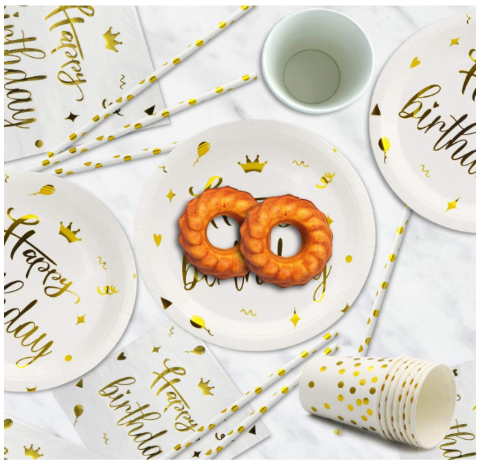 NameThickened gold-stamped 300g birthday paper plates and paper cups for party supplies