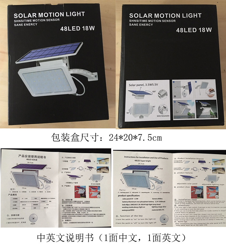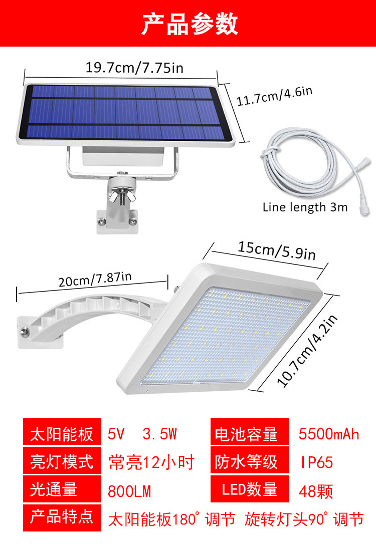 新款分体常亮式48LED太阳能灯参数