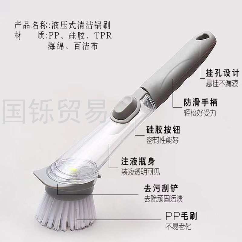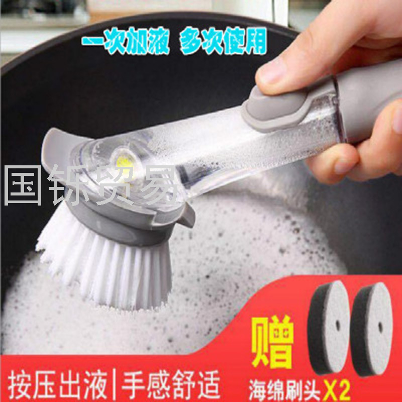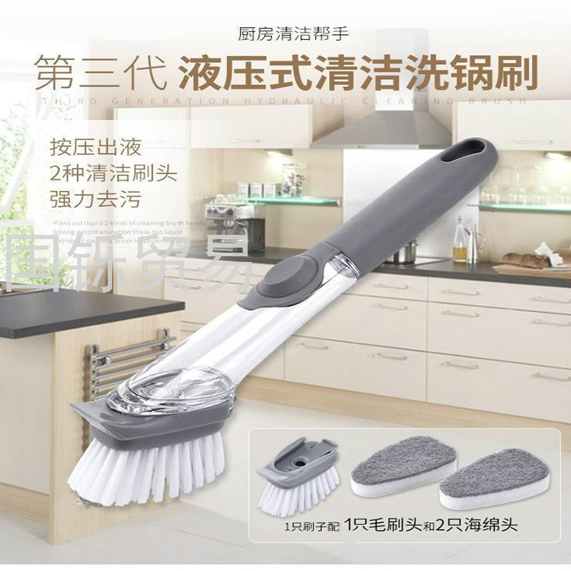 Long Handle Washing Pot Brush Kitchen Washing Pot Dish Sponges Fabulous Pot Cleaning Tool Long Handle Automatic Liquid Adding Dish Washing