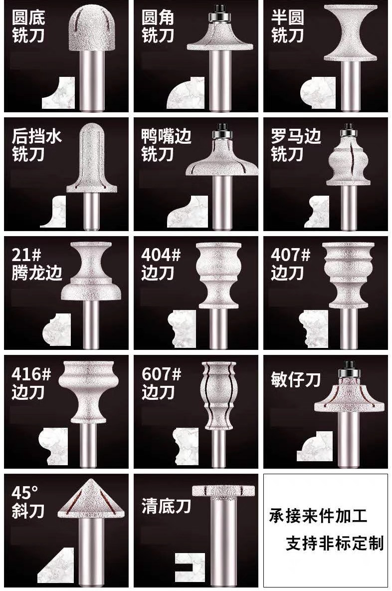 stone milling cutter brazing diamond milling cutter stone grinding head bottom cleaning knife quartz stone milling cutter