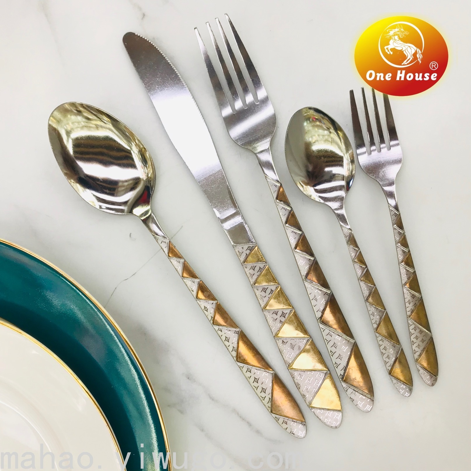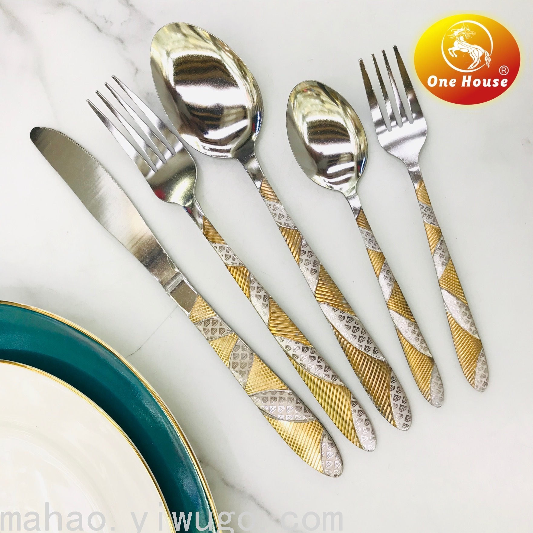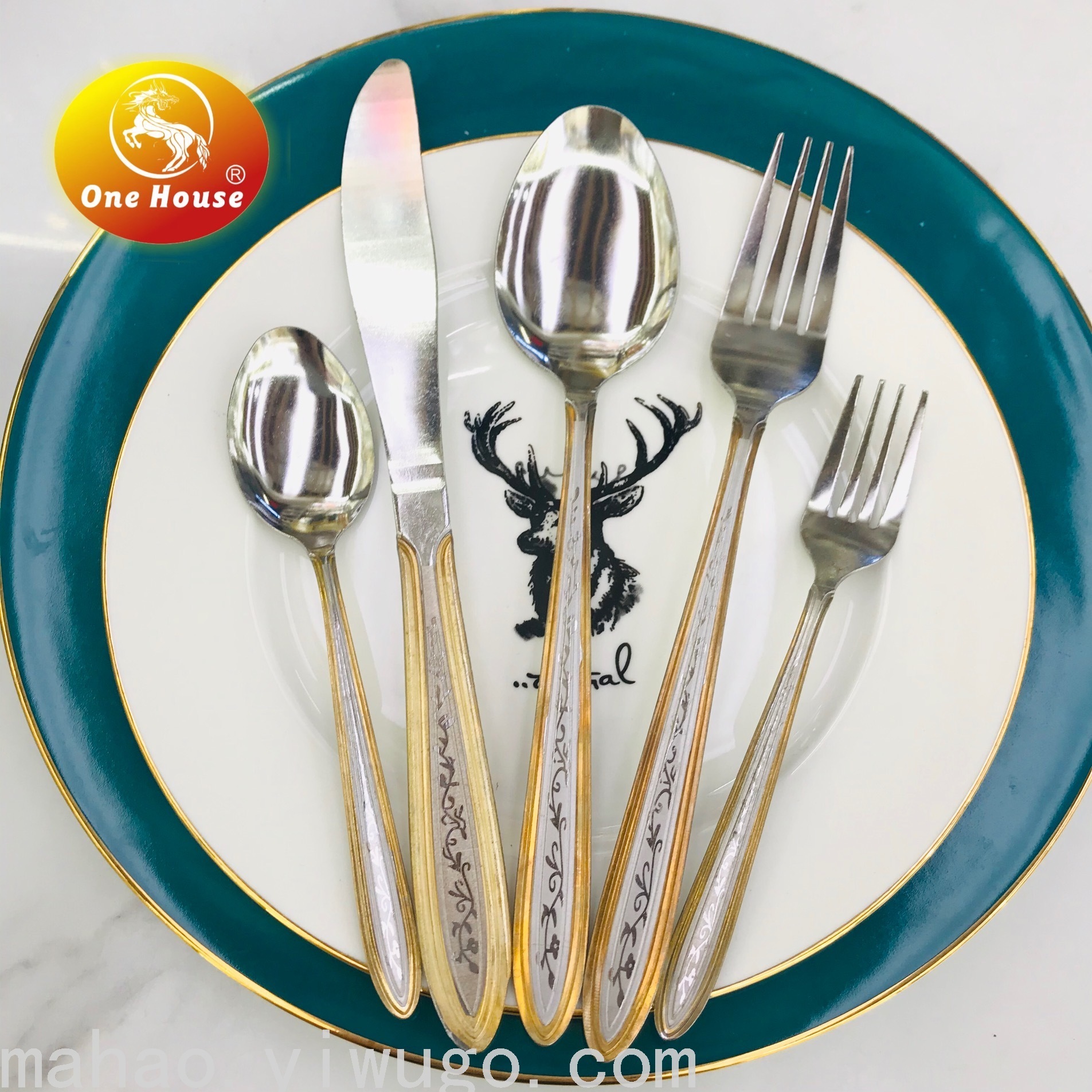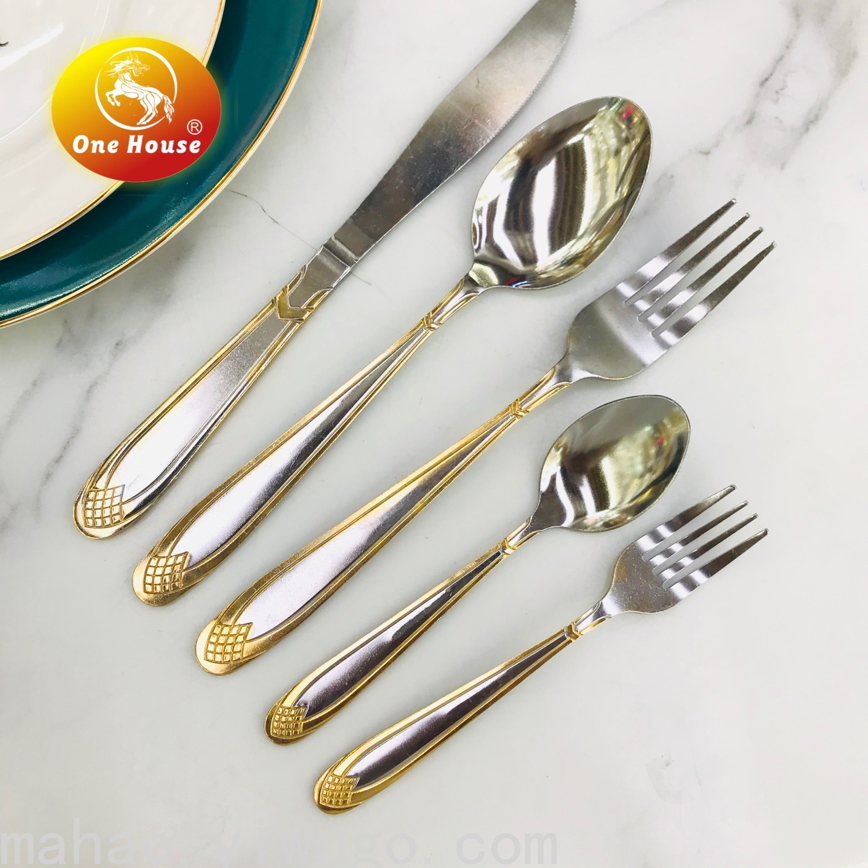 Stainless Steel Gold-Plated Handle Machine Throw Knife, Fork and Spoon