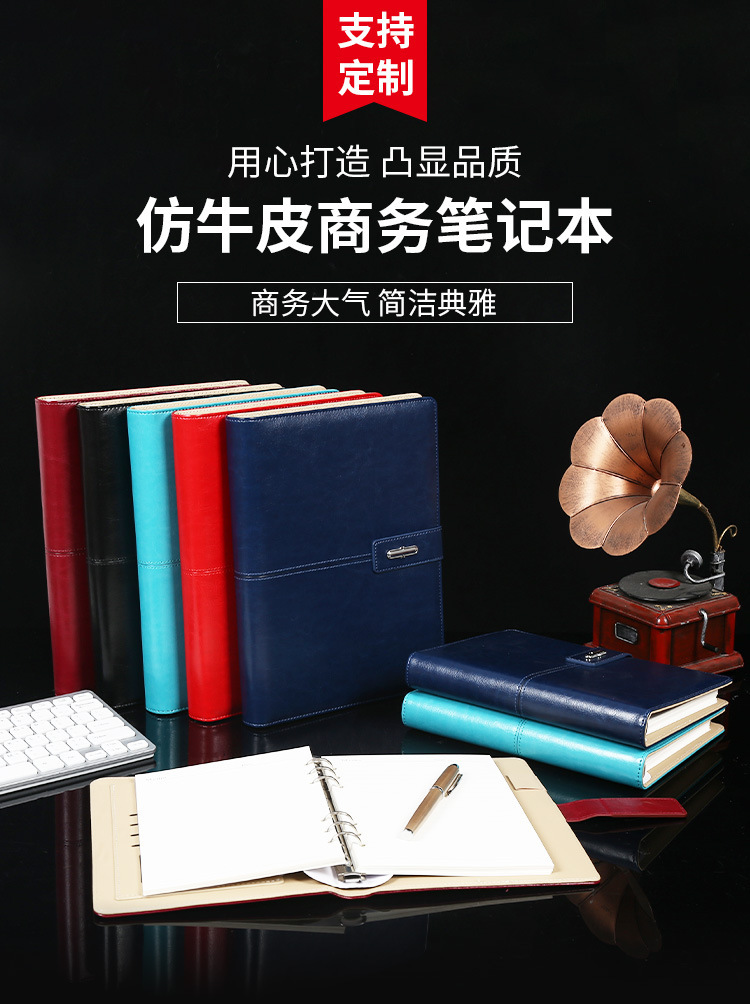 Supply New Magnetic Snap Business Office Notebook Loose-Leaf Imitation Cowhide Portable Logo Custom