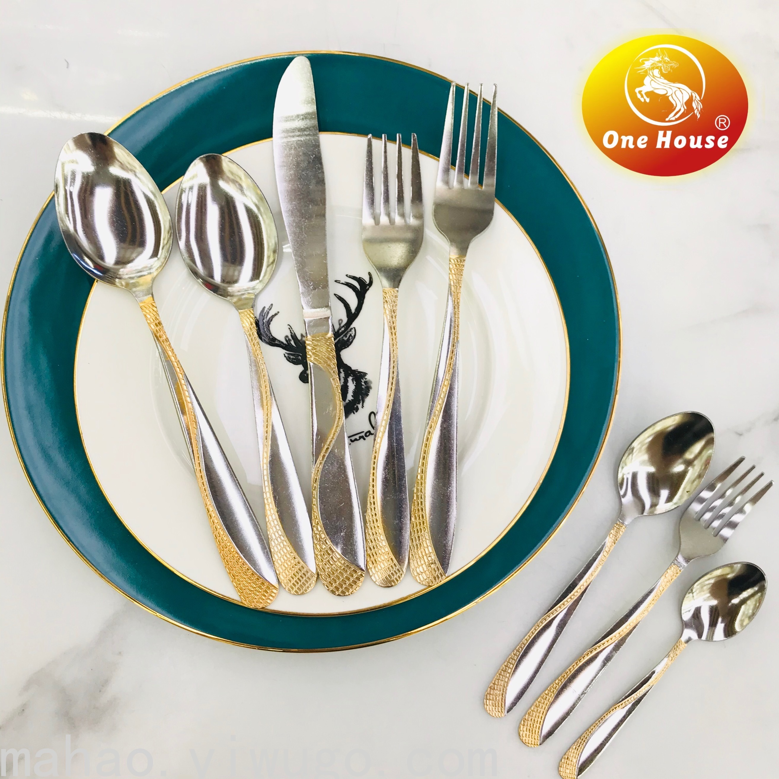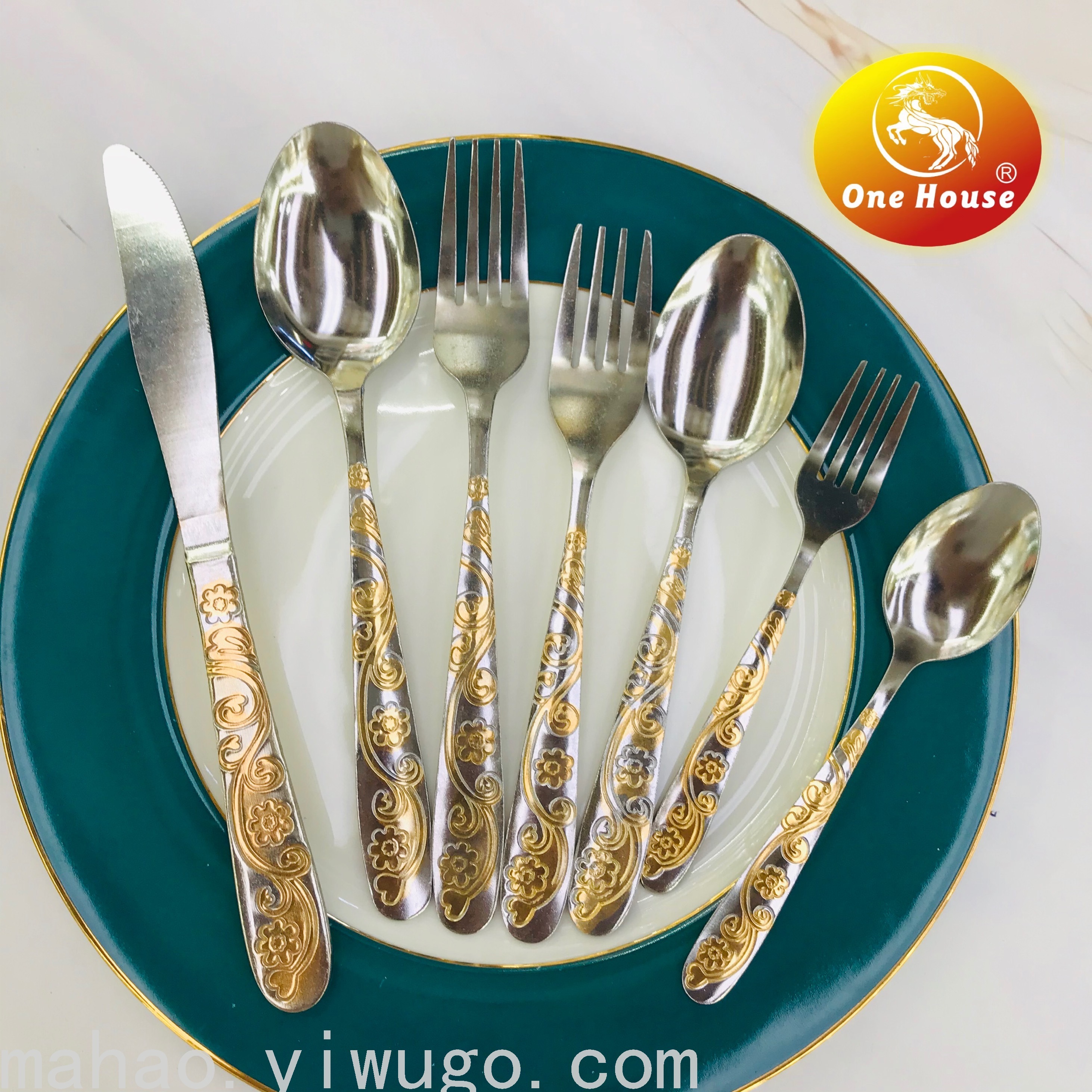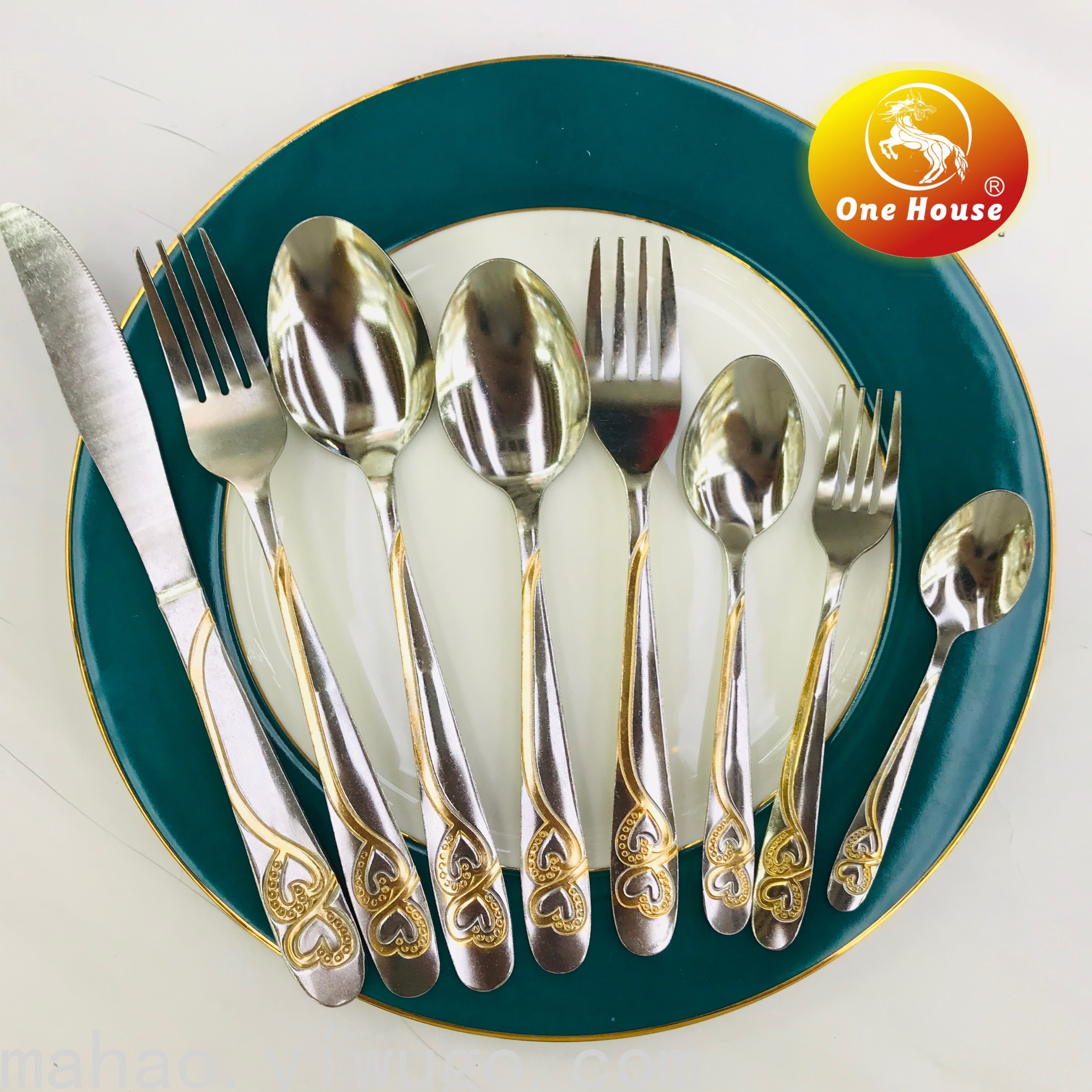Stainless Steel Gold-Plated Handle Machine Throw Knife, Fork and Spoon