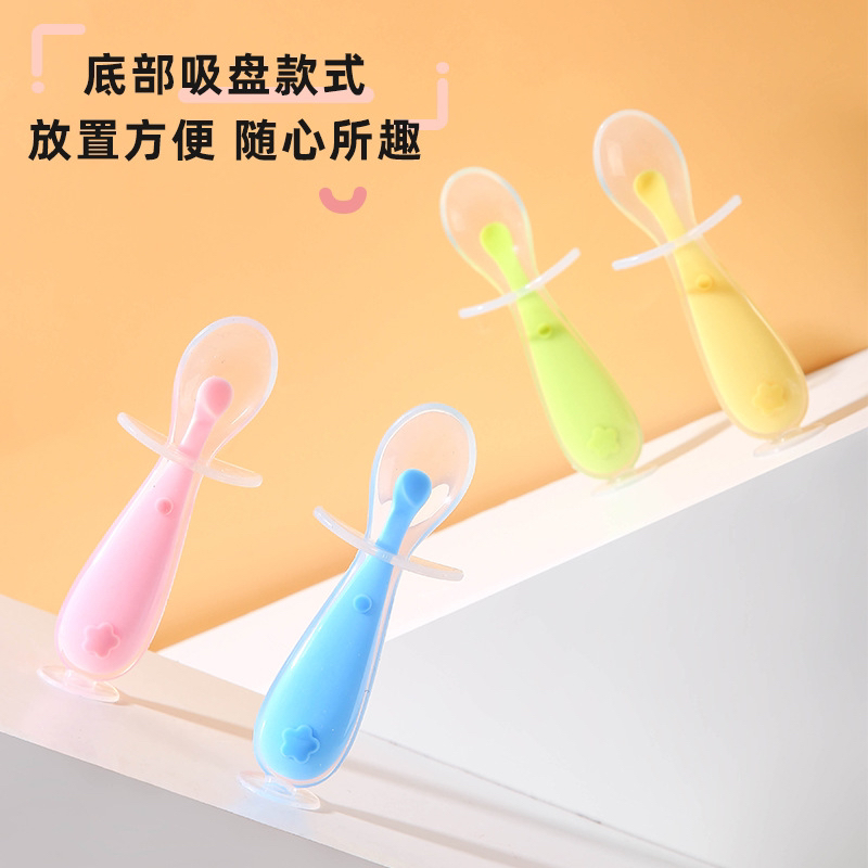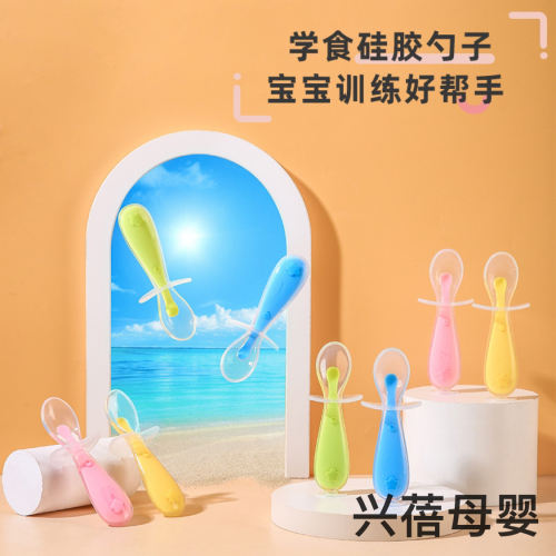 Baby Silicone Soft Soft Spoon Sub with Baffle Liquid Silicone Training Spoon Baby Feeding Soft Spoon Children Feeding Tableware