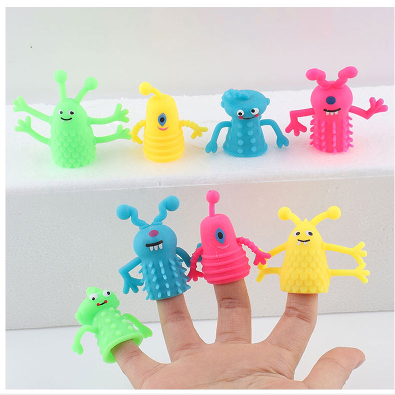 boxed tpr mini animal monster finger puppets trick spoof squeezing toy pressure reduction toy finger bubble music