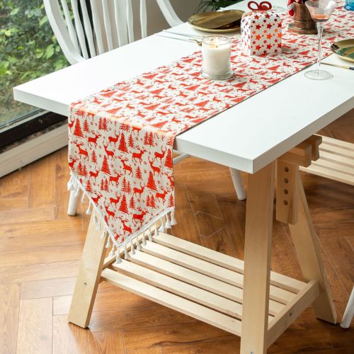 Christmas Festival Atmosphere Table Runner Cotton and Linen Bronzing Fabric Tassel Table Runner