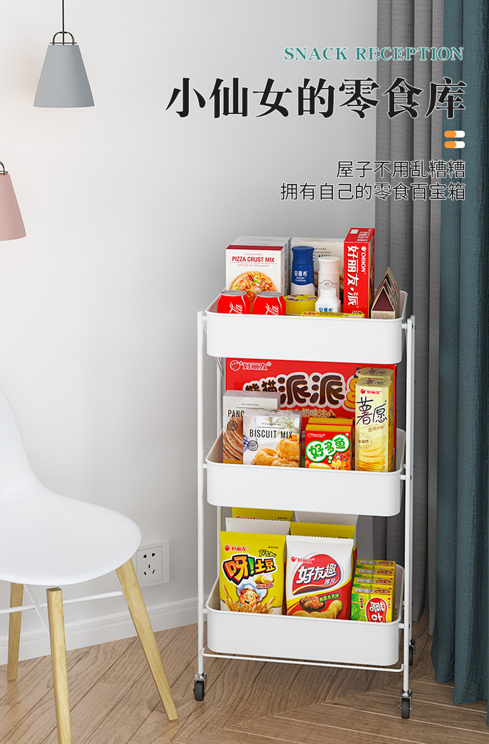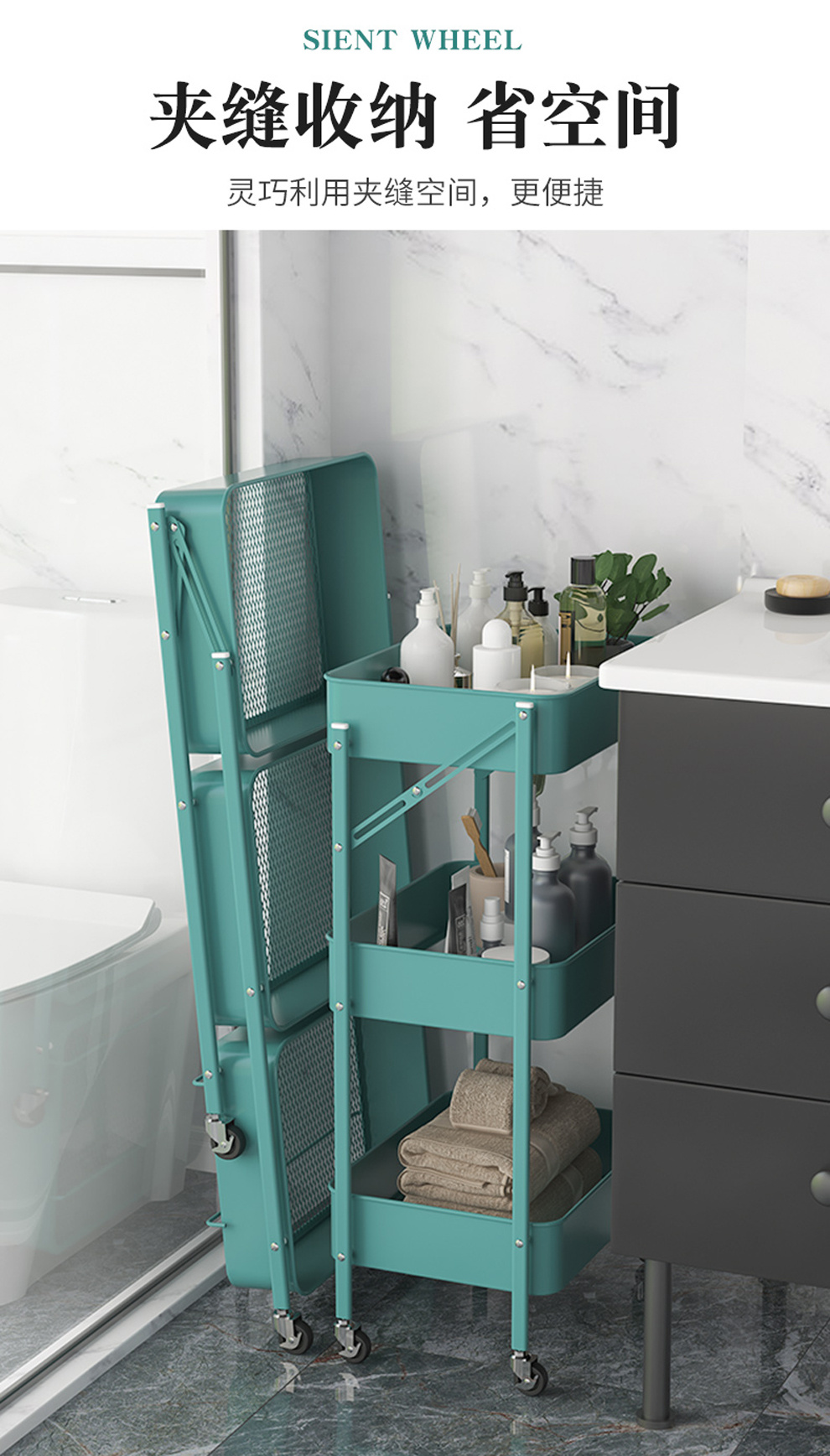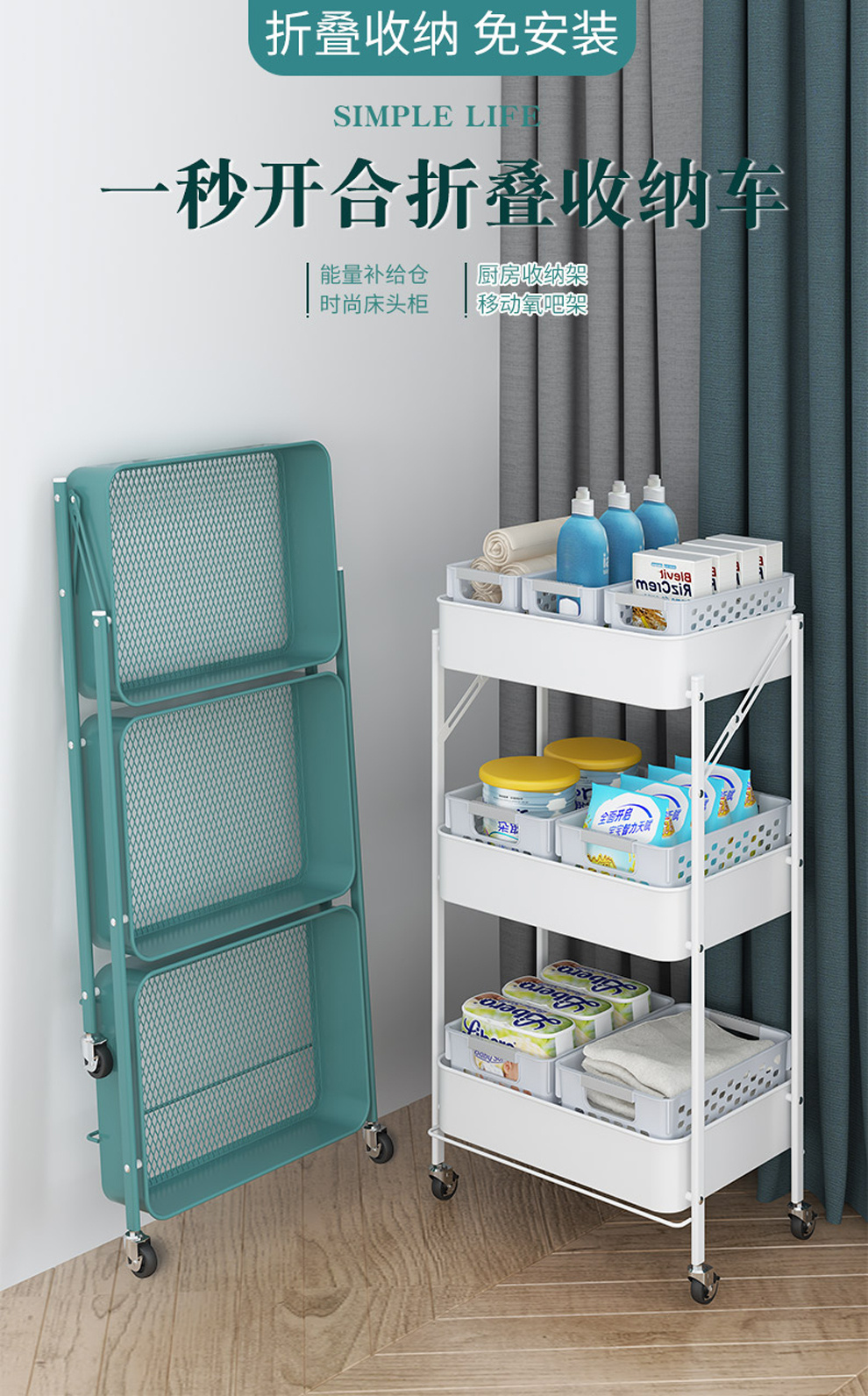 Product Name: installation-free trolley rack foldable movable floor multi-layer vegetable rack trolley kitchen storage rack