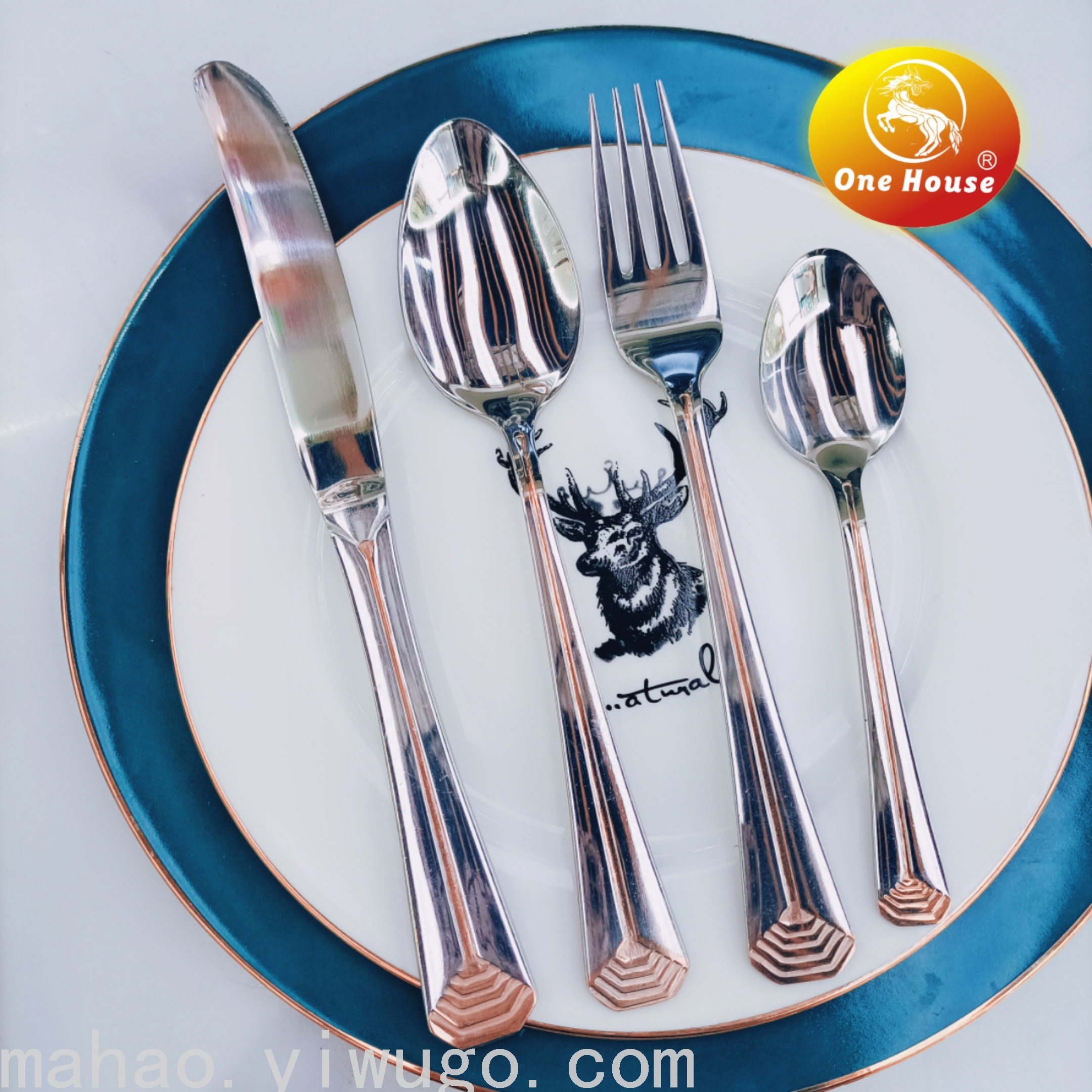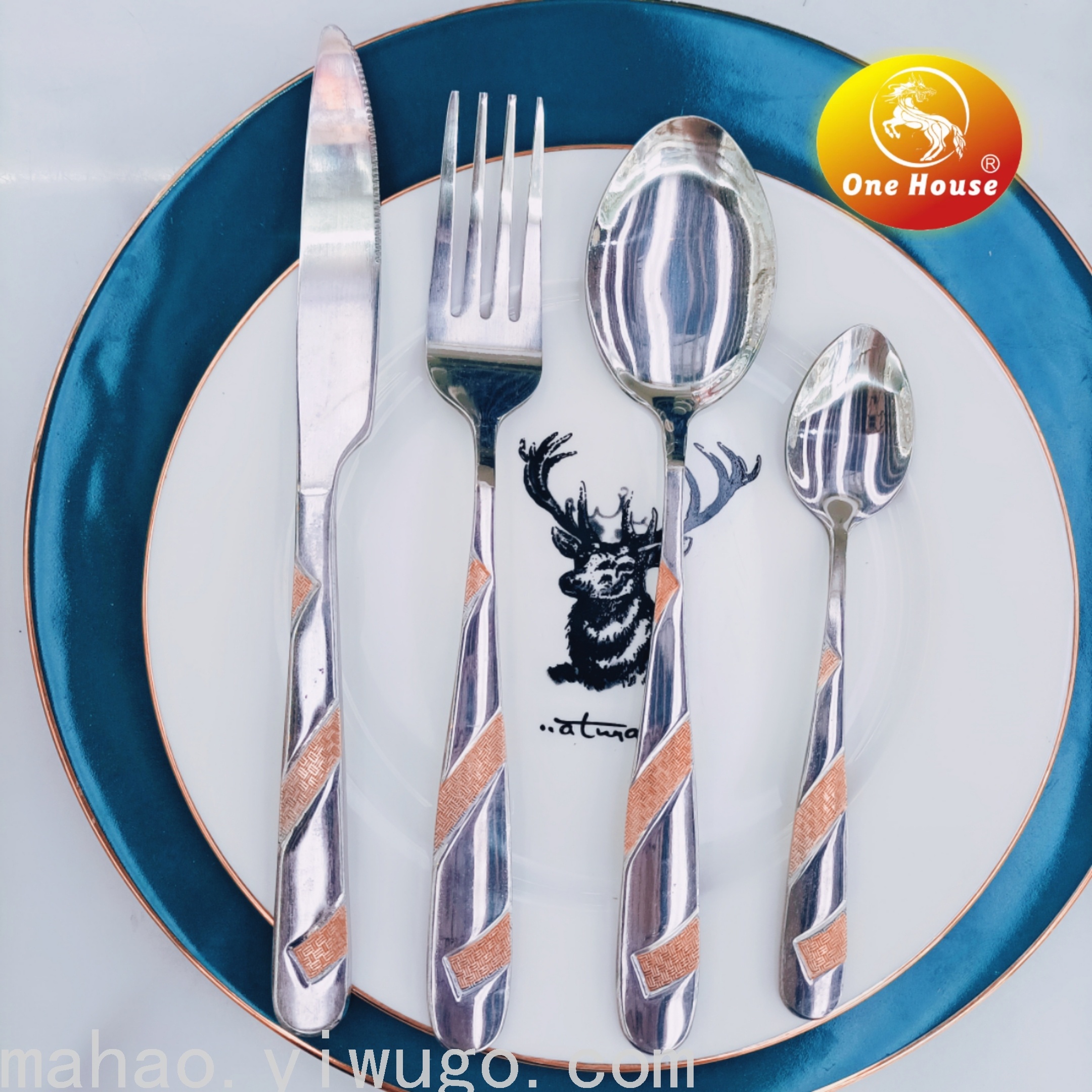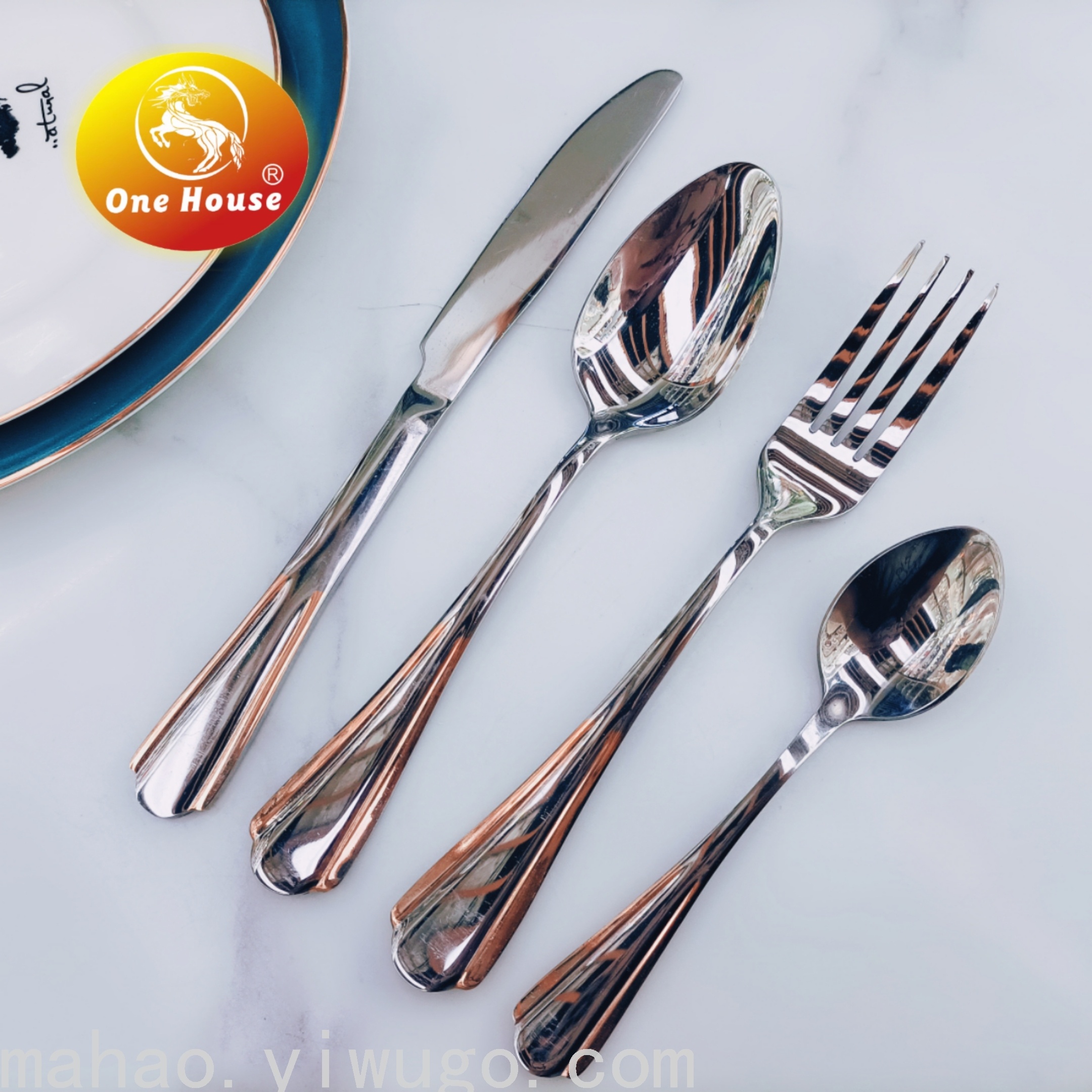 Stainless Steel Gold-Plated Handle Knife, Fork and Spoon