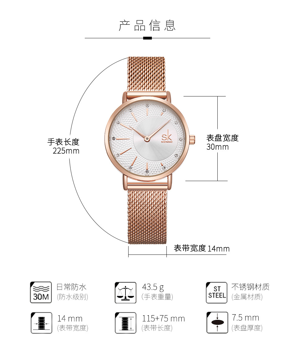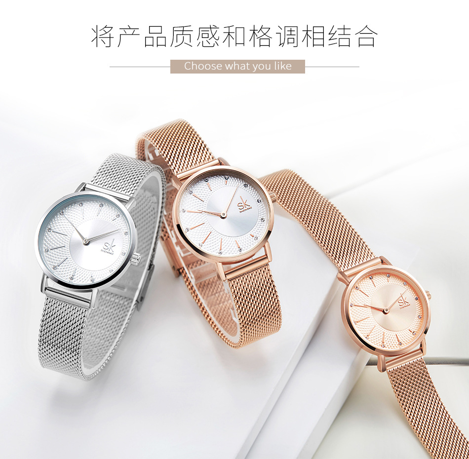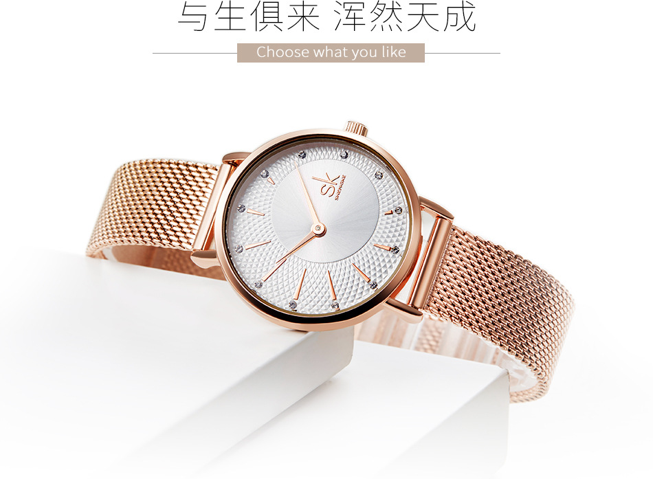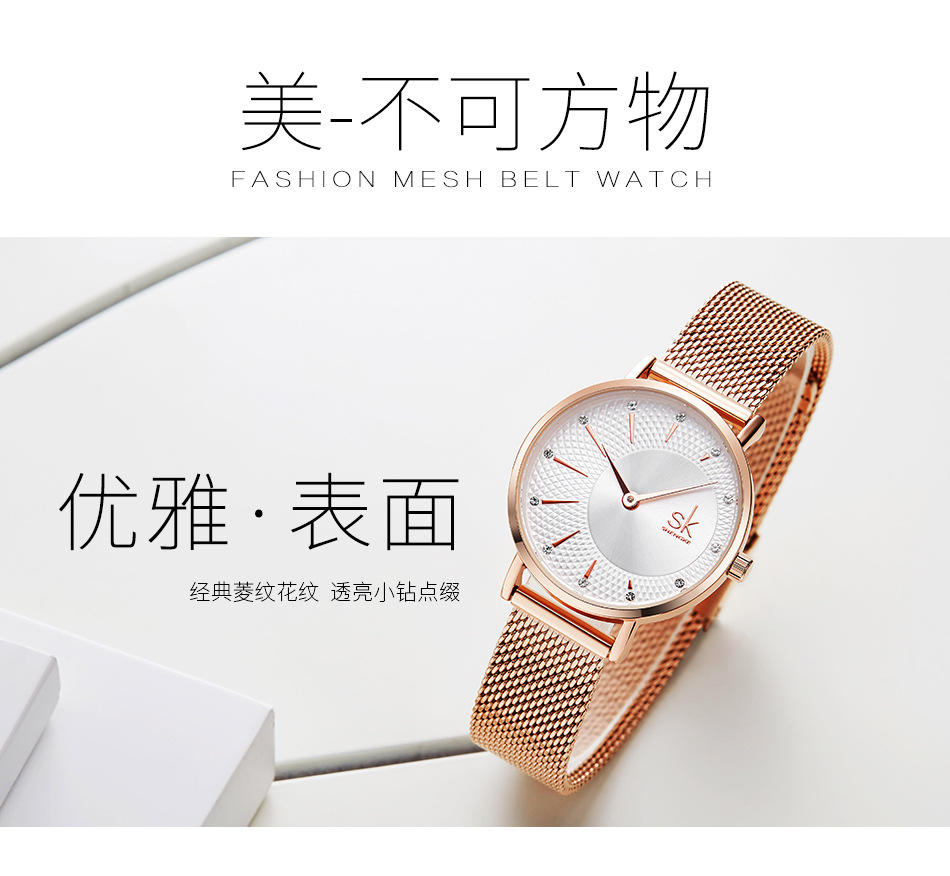 Hot Selling Product Shengke Shengke Steel Mesh Strap Watch Diamond Women's Watch 2-Pin Quartz Watch K0093
