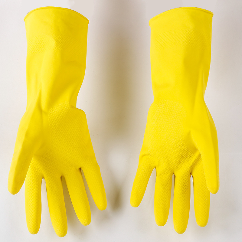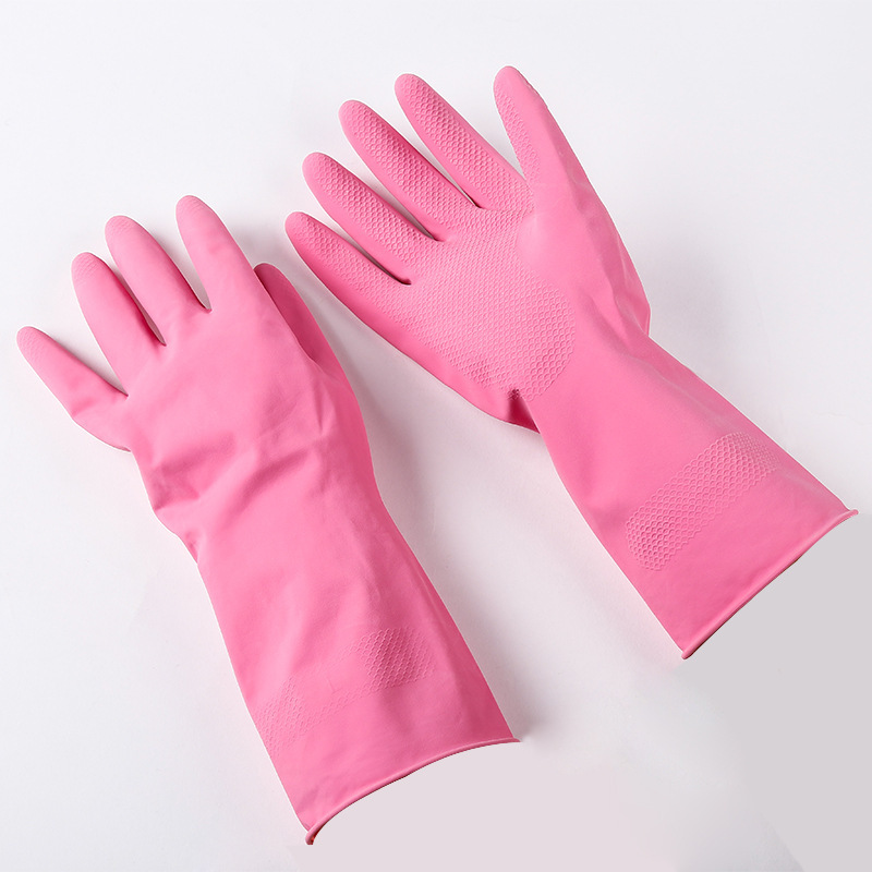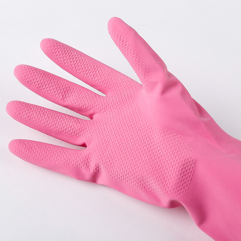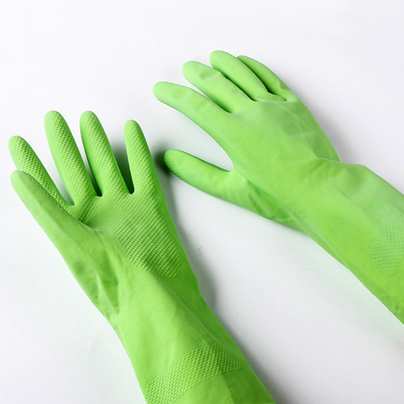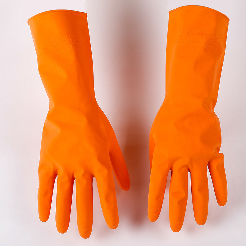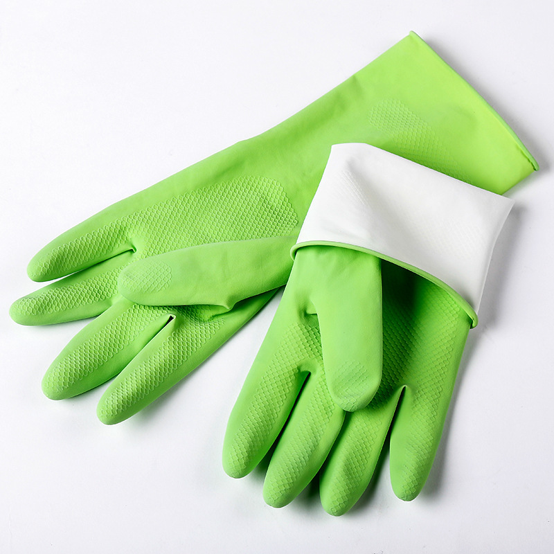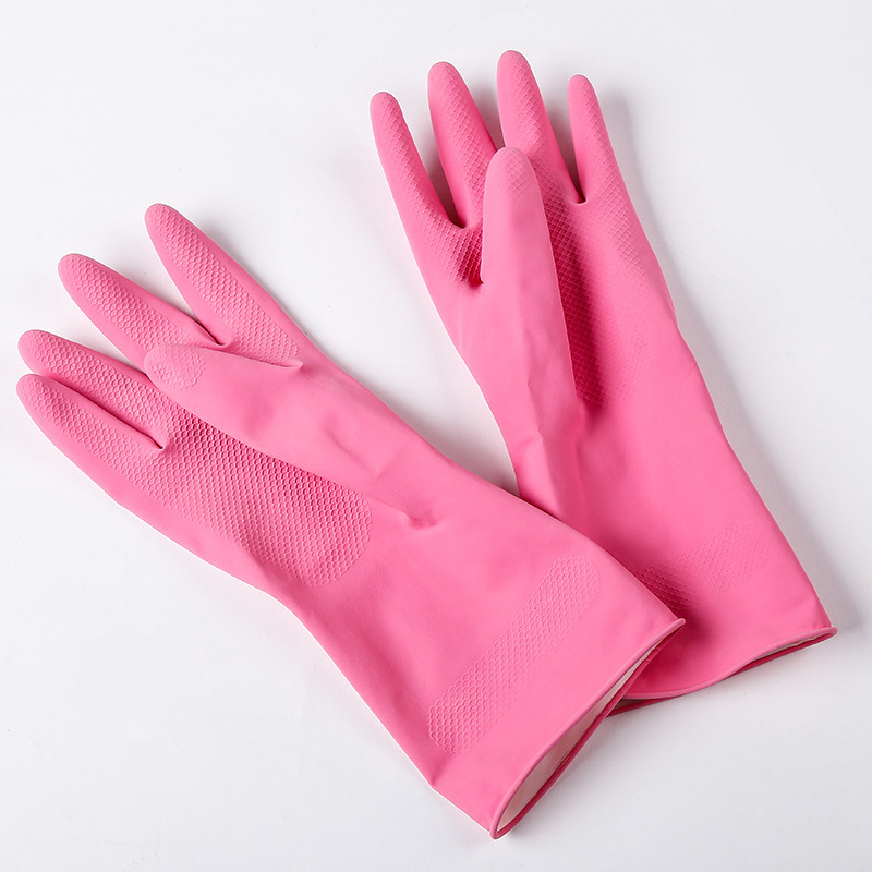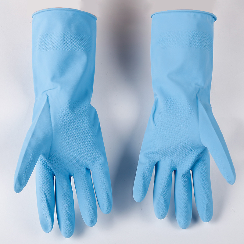 New Fleece-Sprayed Household Cleaning Gloves Laundry and Dishwashing Rubber Gloves Multi-Color Waterproof Kitchen Household Protective Gloves