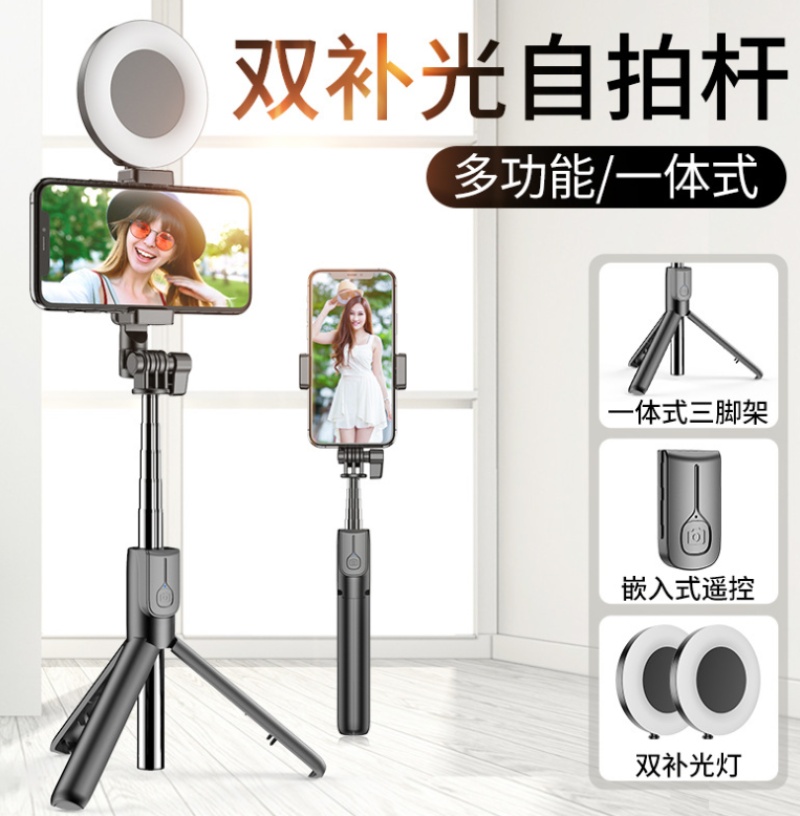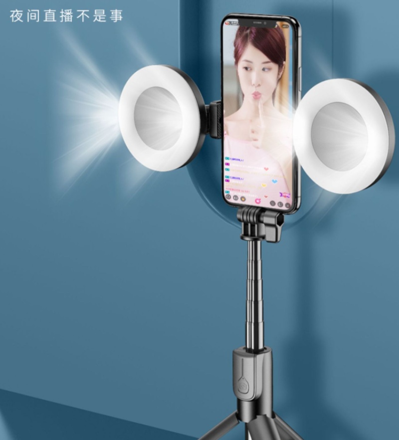 Selfie stick Bluetooth with remote control desktop phone stand for live streaming integrated telescopic double fill light selfie stick