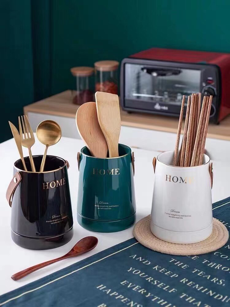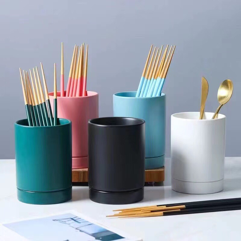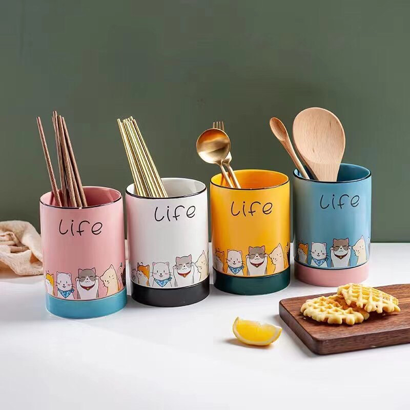 Ceramic pot for fock and spoon