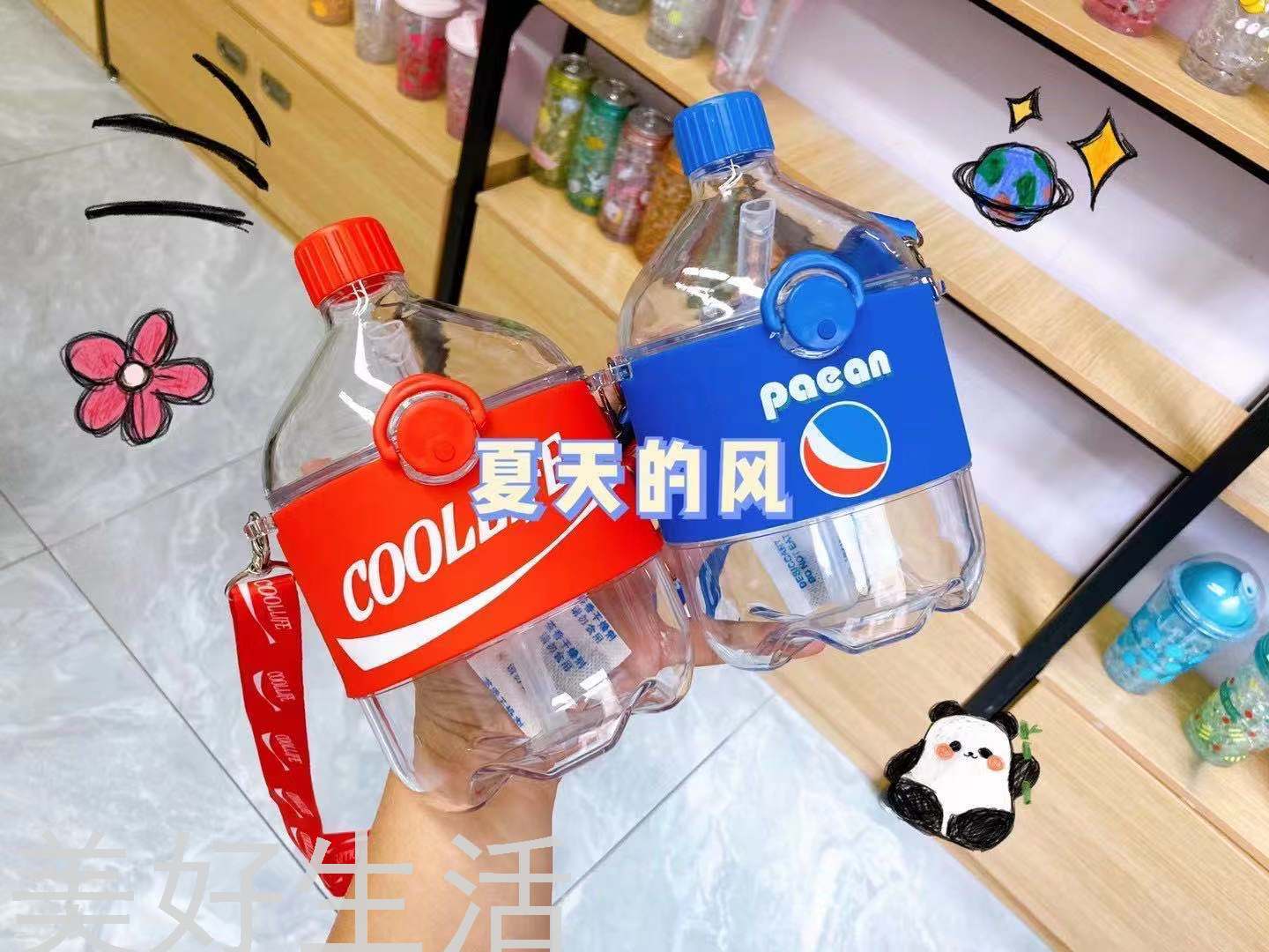 New Hot Sale Popular Cola Straw strap Plastic Cup Student Outdoor Creative Water Cup