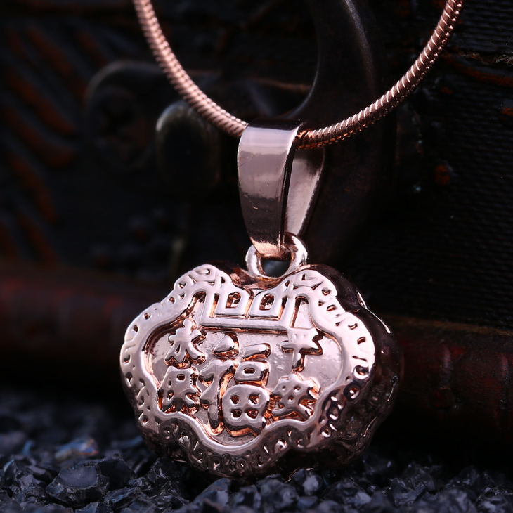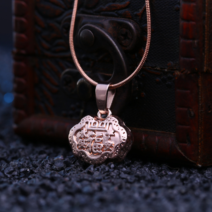 Chains circumference 45cm + 5CM extension chain, pendant 1.8cm * 1.5cm正面,"福”,"Opposite side: Wealth and Longevity |
