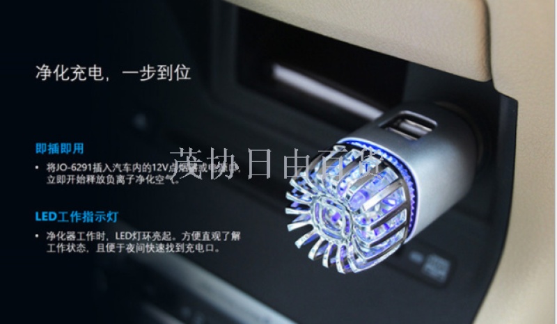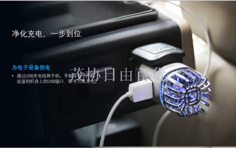 Car air purifier car charger 5 V2A mobile phone high-speed charging dual USB cigarette lighter