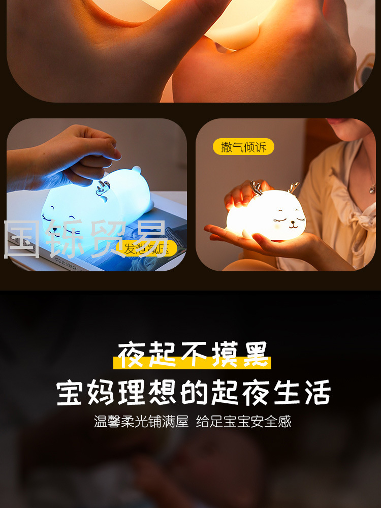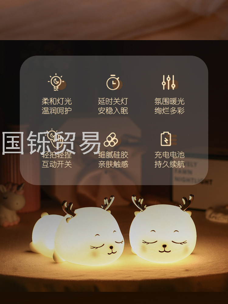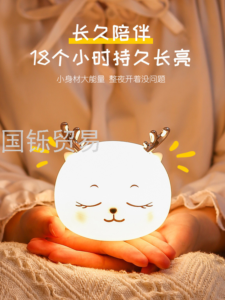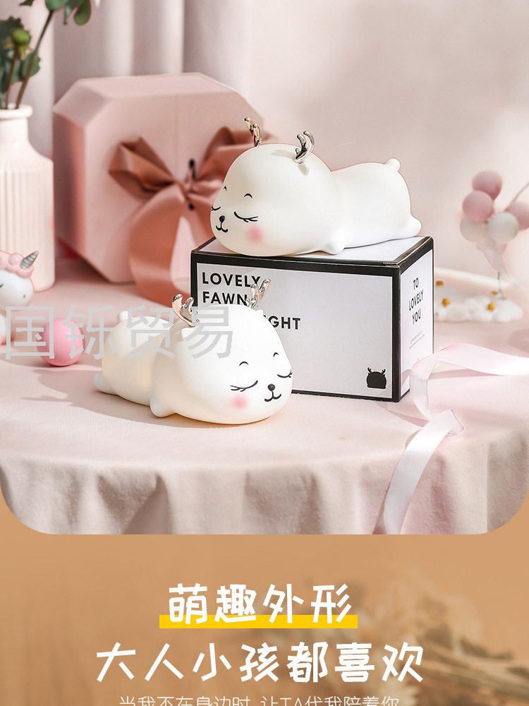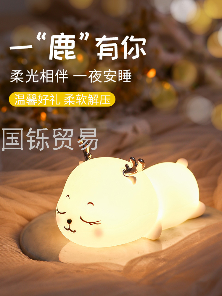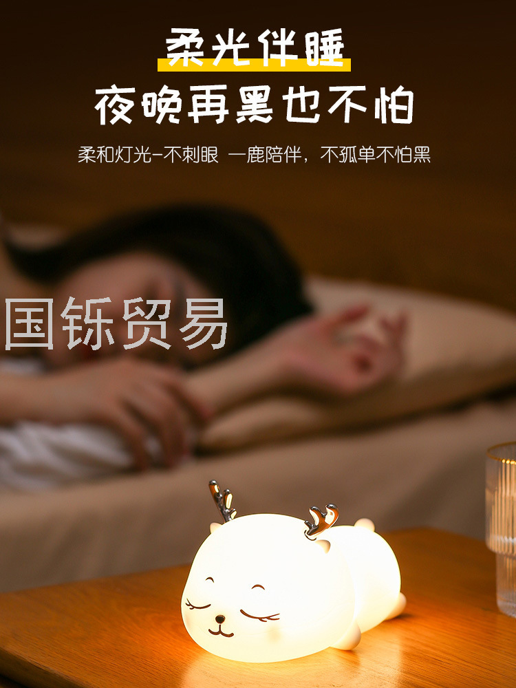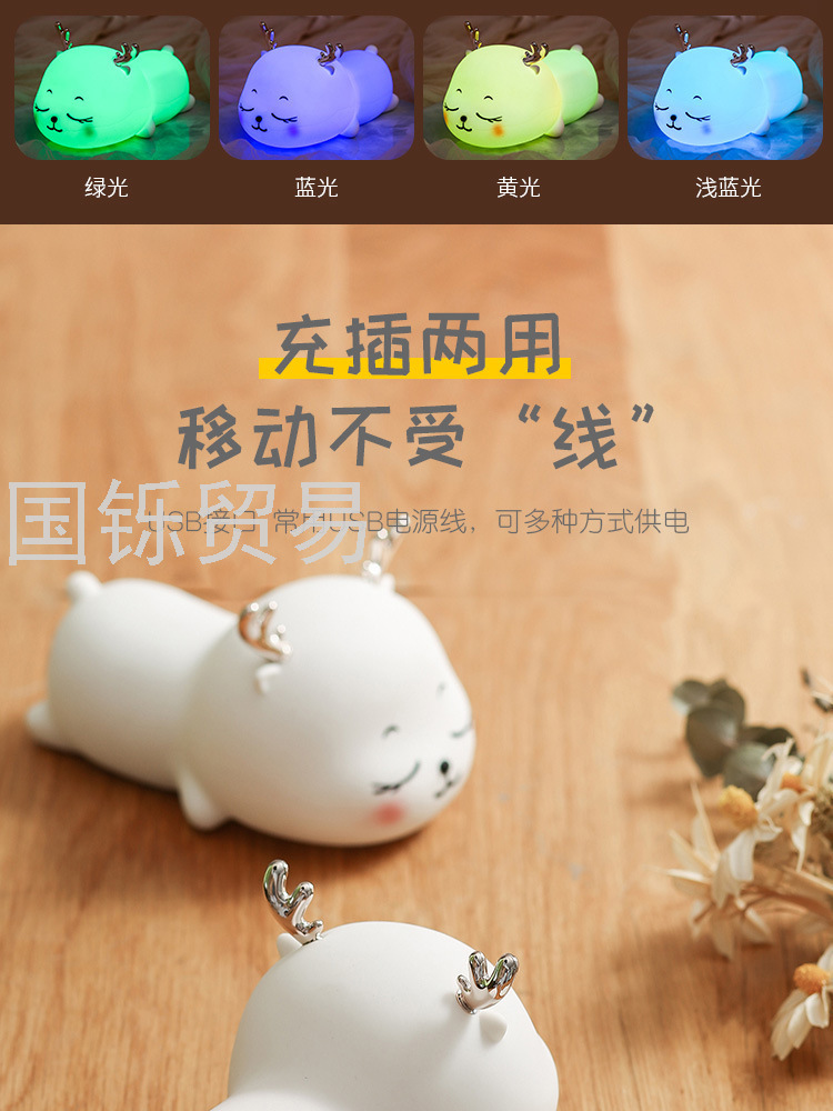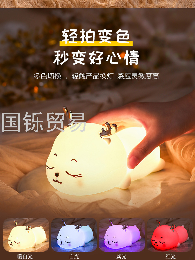 Silicone Pat Lamp Cute Deer Led Charging Seven-Color Night Light Bedside Sleeping Light Children's Day Creative Gift Deer