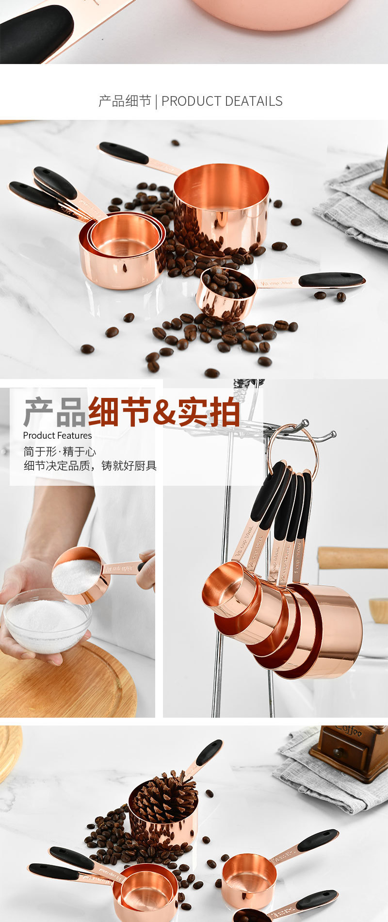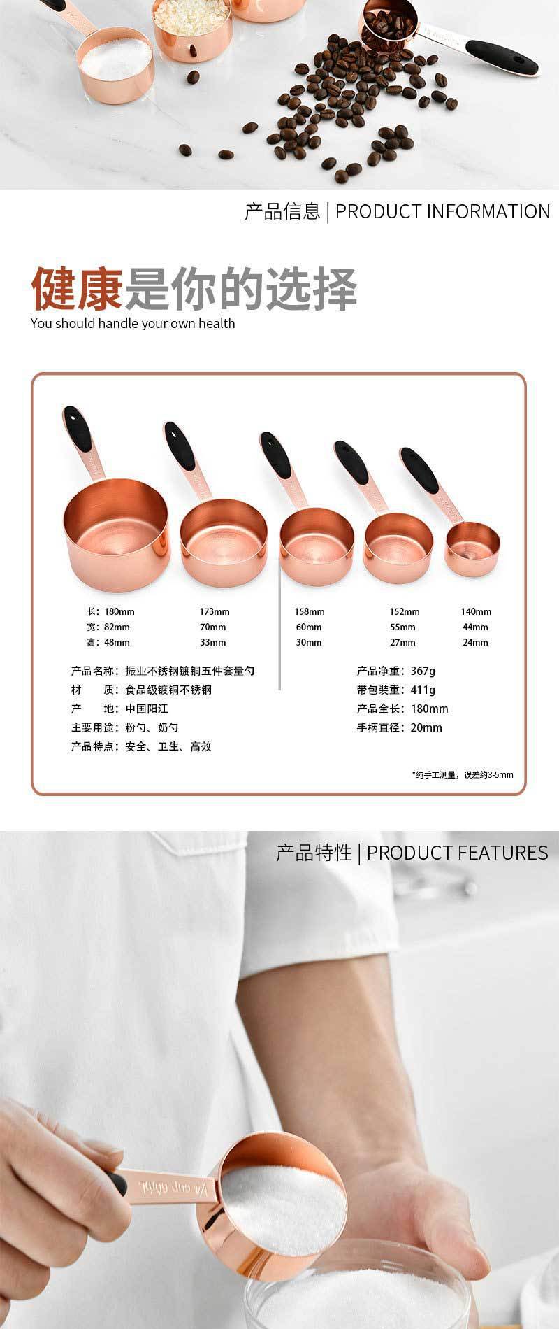 Rose gold stainless steel measuring cup set of 5