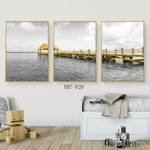 bridge to run living room decorative painting sofa background triple painting modern minimalist nordic black and white wall painting