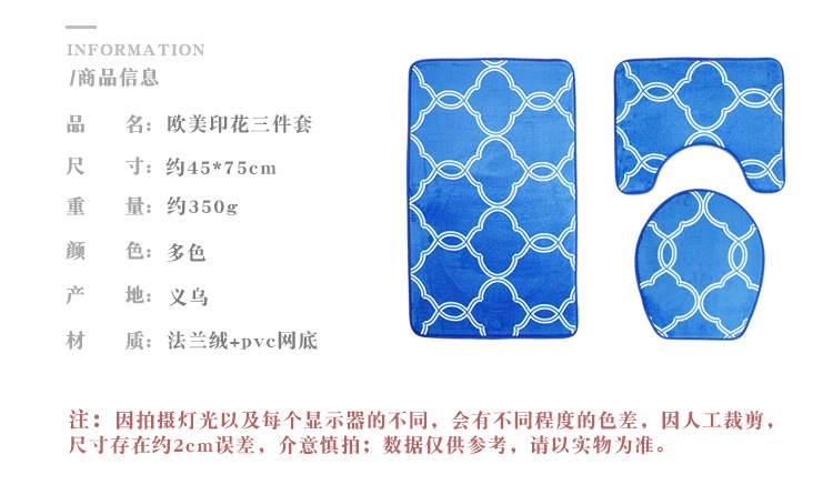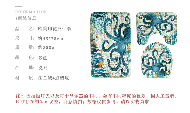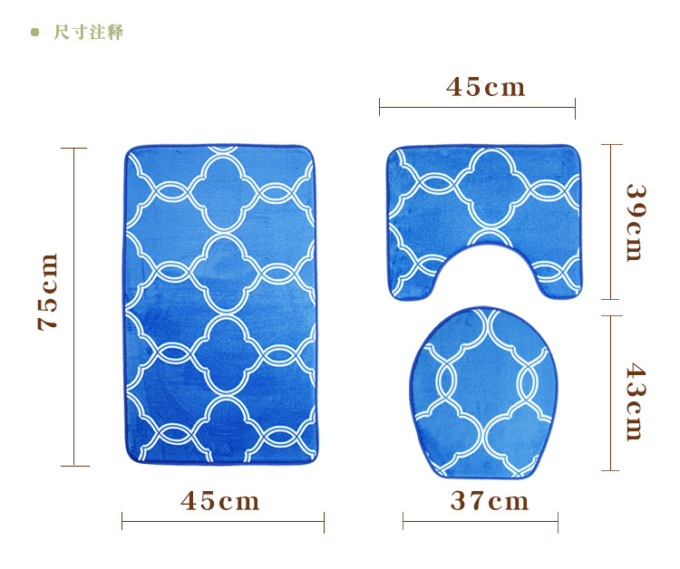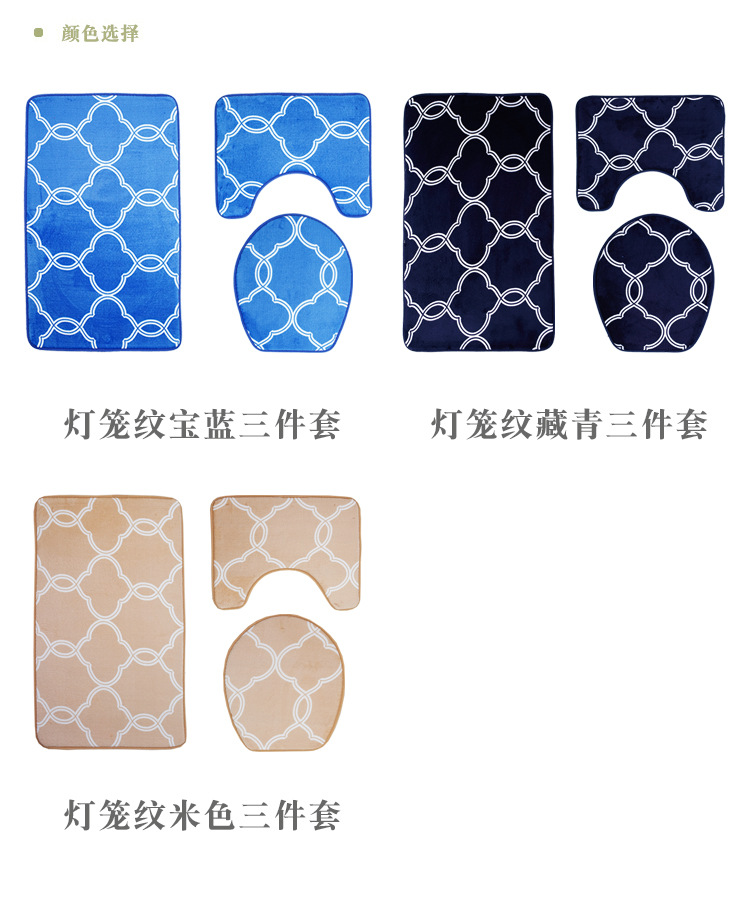 European and American Popular Pattern Floor Mat Toilet Foot Mat Three-Piece Bathroom Non-Slip Carpet Printing Suit Custom Cross-Border