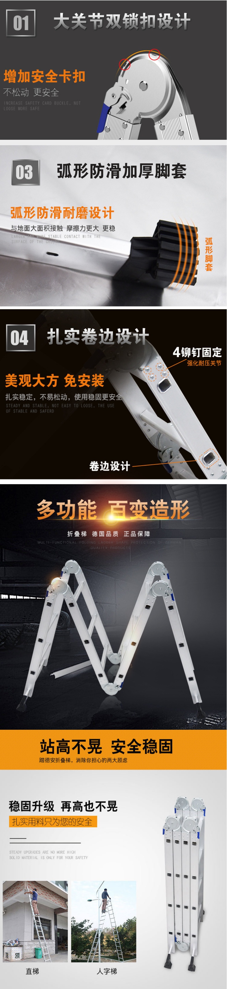 Multifunctional Folding Ladder Ladder Home Use Aluminum Alloy Step Ladder Aluminum Alloy Multifunctional Home Use Step Ladder