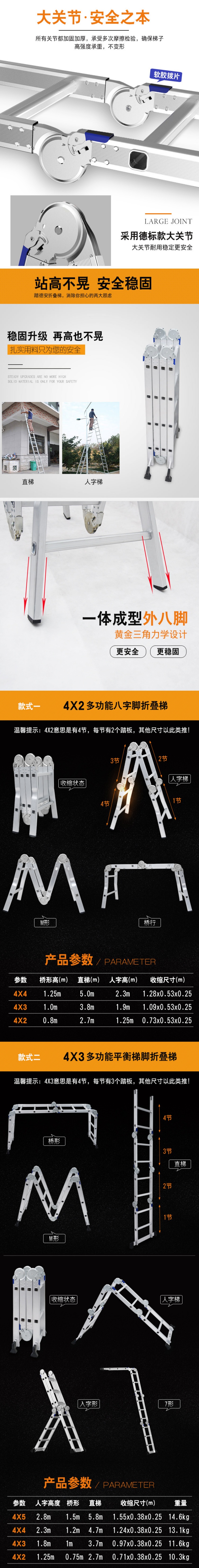 multi-functional folding stair ladder household aluminium alloy herringbone ladder aluminum alloy multi-functional household herringbone ladder
