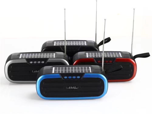This new model. Jz-136FM radio. USB/TF card music player. Built -in Bluetooth. With Solar panel. With rechargeable bat