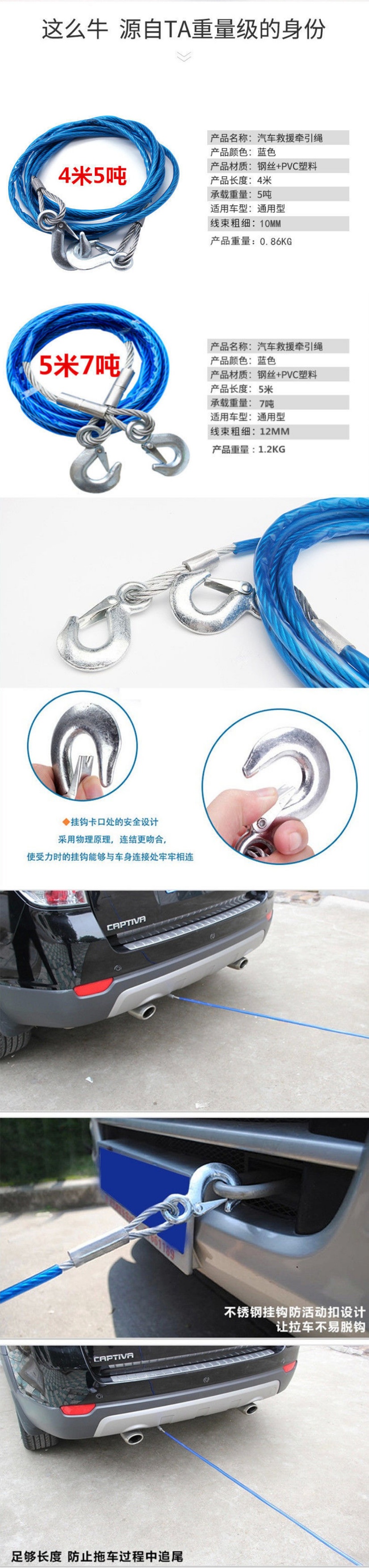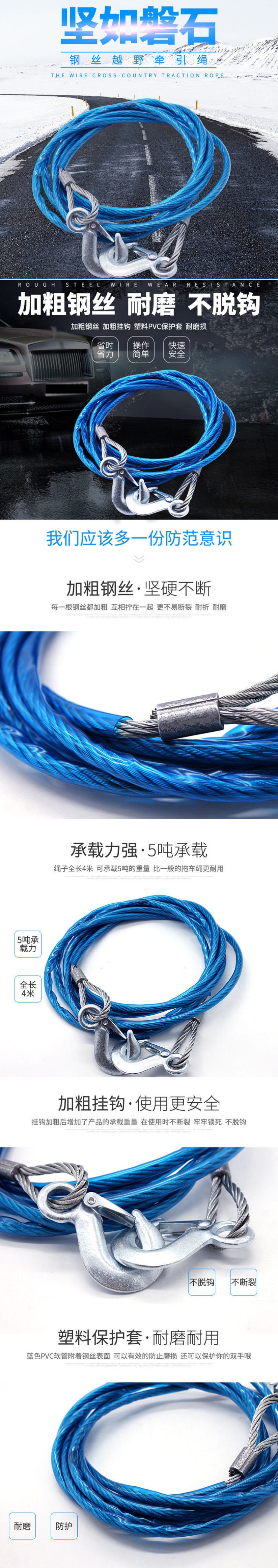 Bold steel wire rope car tow rope off-road small car towing rescue rope vehicle tow rope towing belt