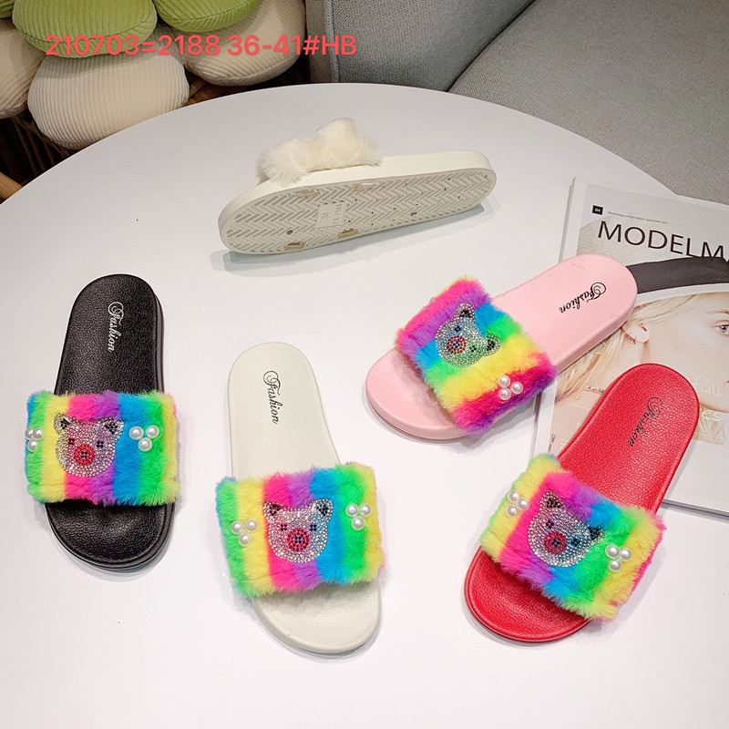 spring and autumn ladies rainbow woolen slippers