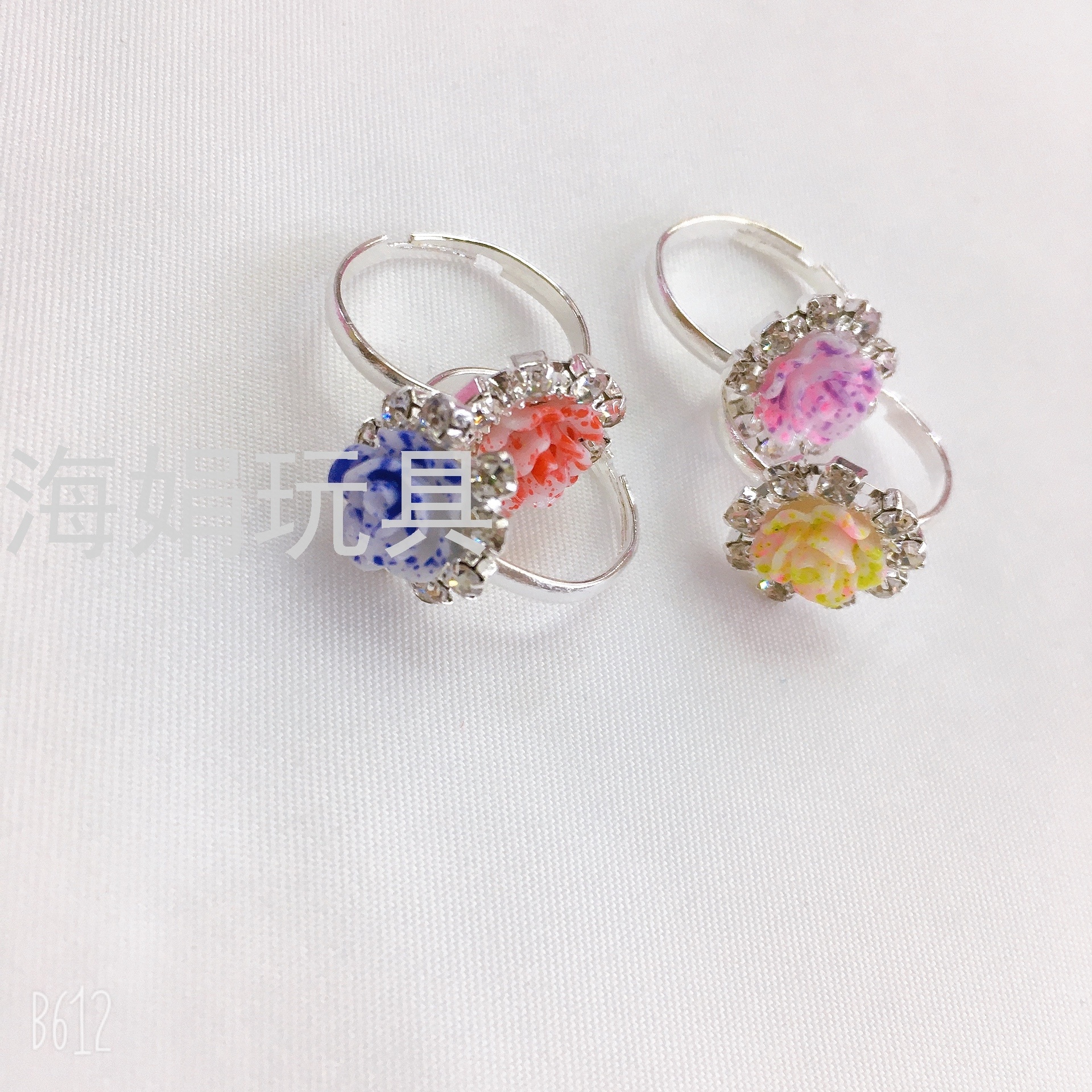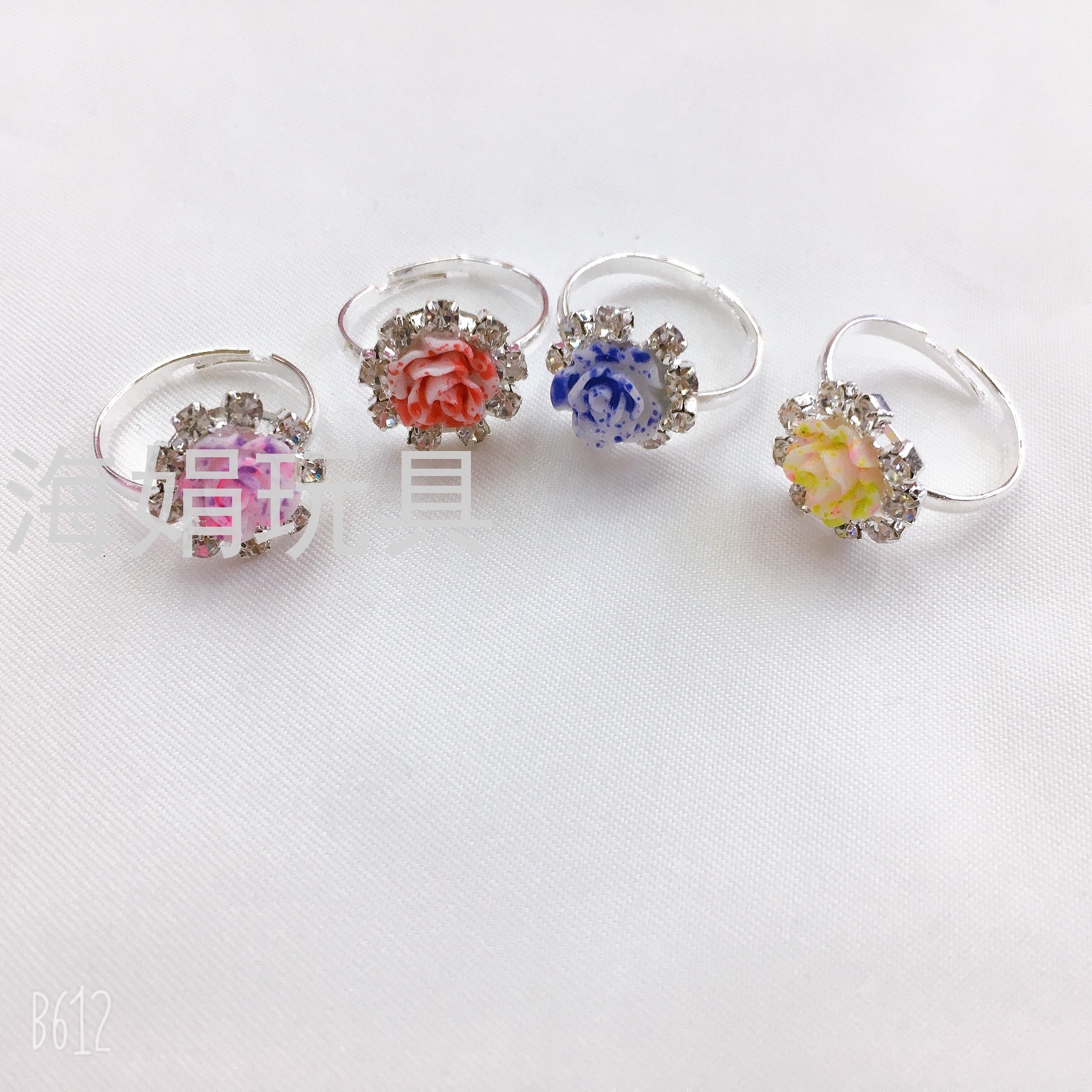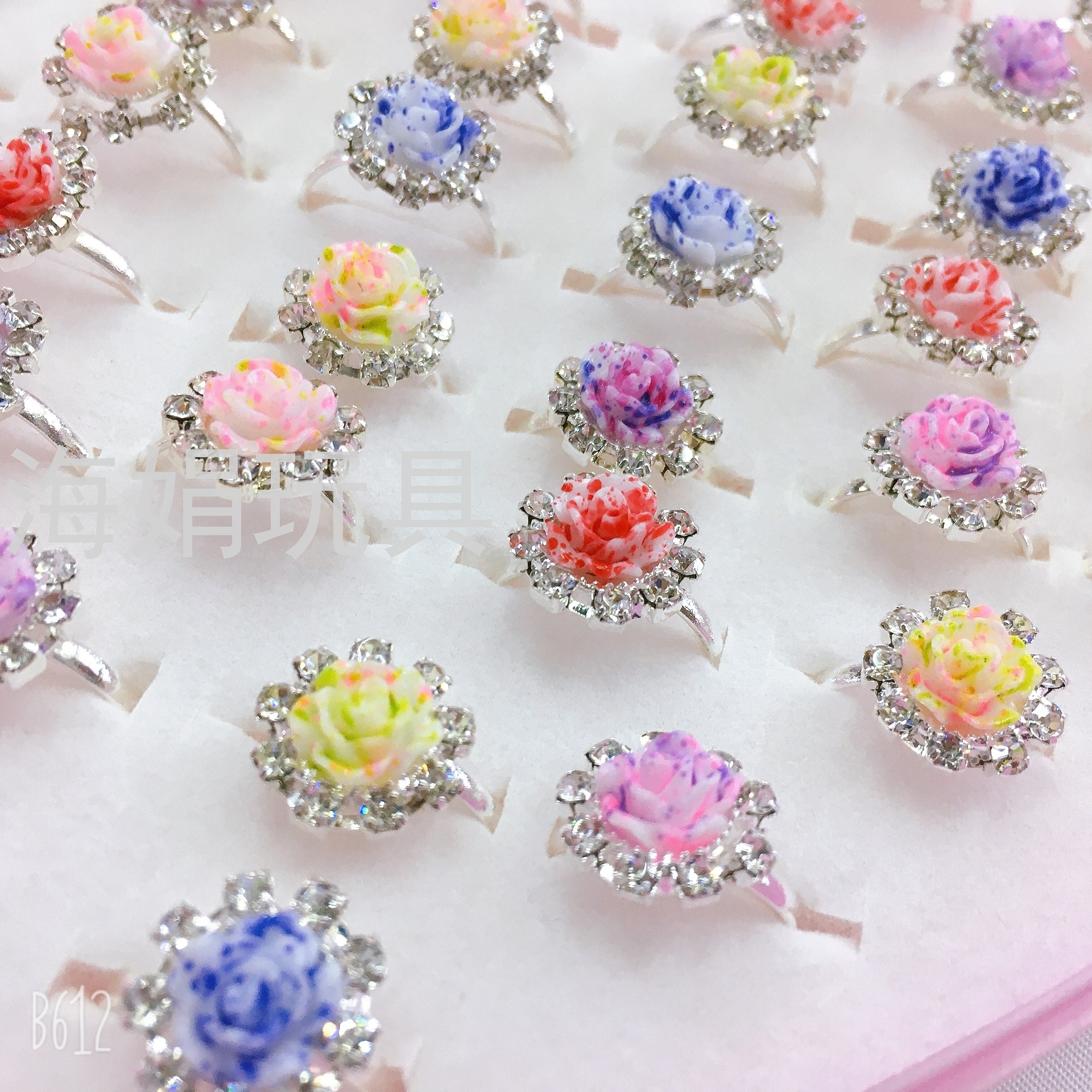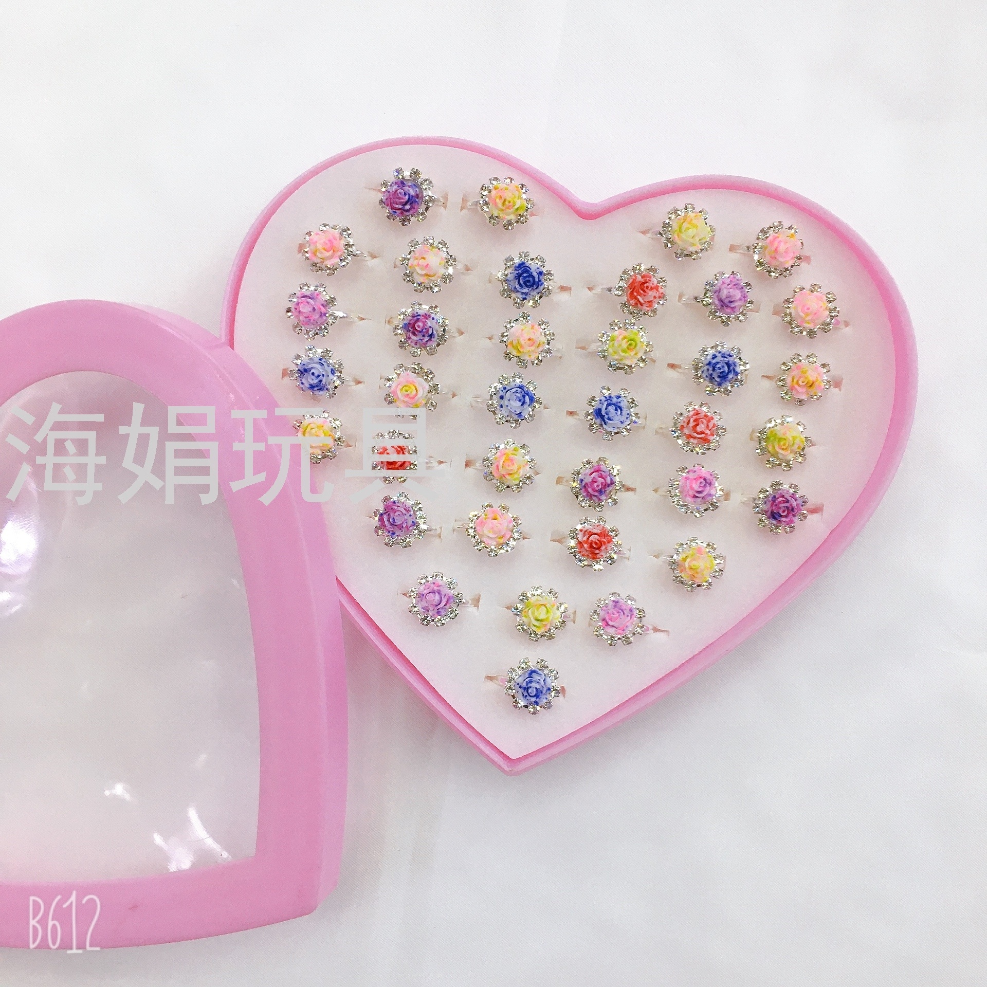 Children's Ring Set Rhinestone Girls' Exquisite Ring Adjustable Love Box Set 36 Rose Rhinestone Rings