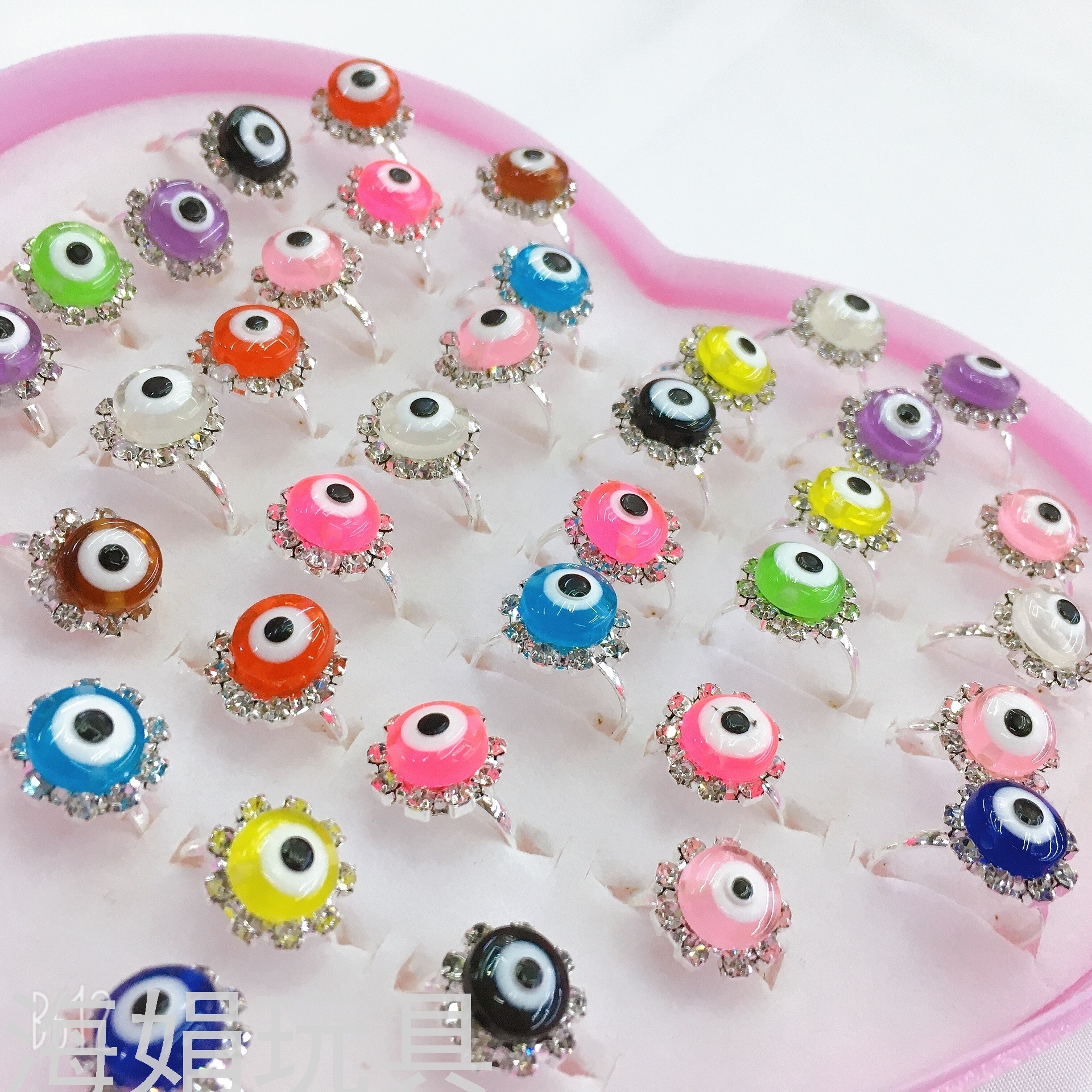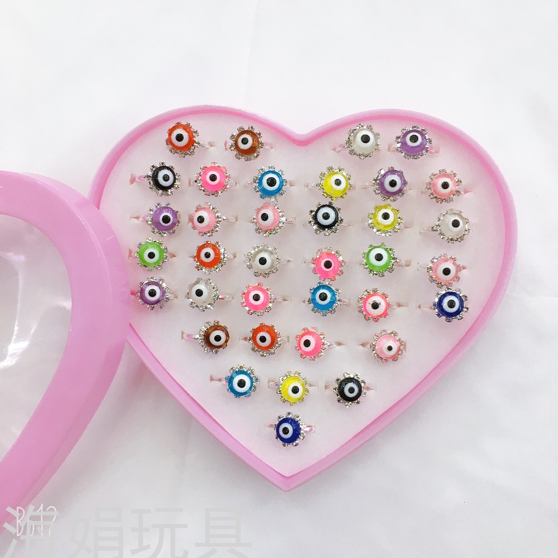 children's ring set girls exquisite ring adjustable love box set 36 eyeballs eye beads rhinestone ring