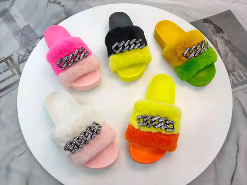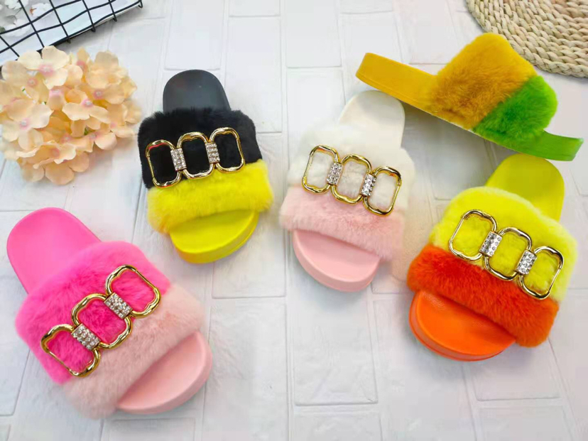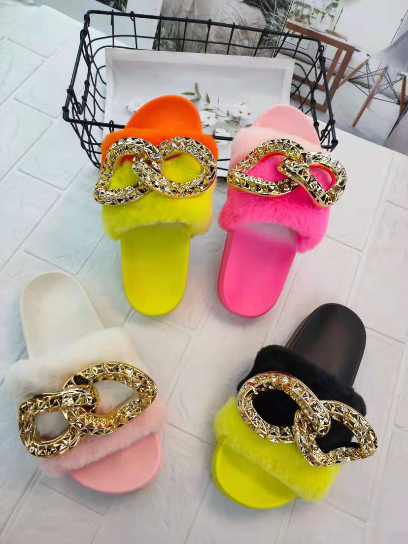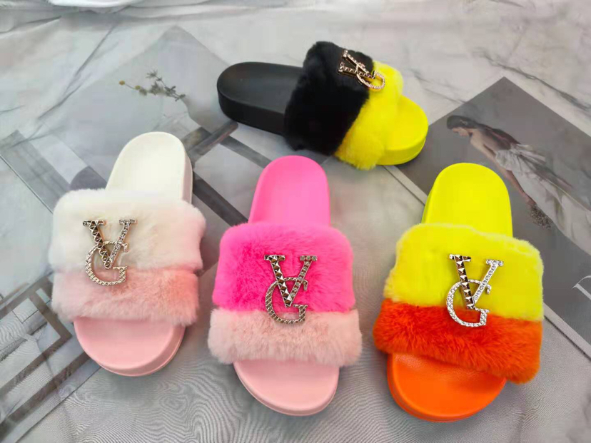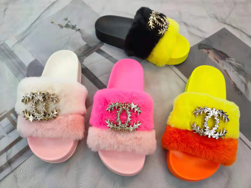 2021 new fashion trendy medium and high grade furry women's slippers