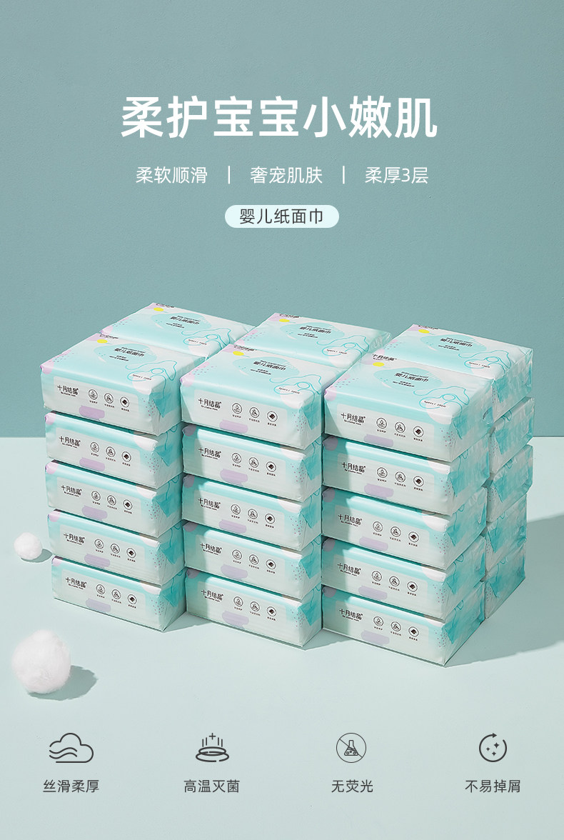 October Jingjing Baby Special Soft Paper Facecloth Baby Paper Extraction Newborn Special Soft Tissue 100 Pumping * 10 Packs