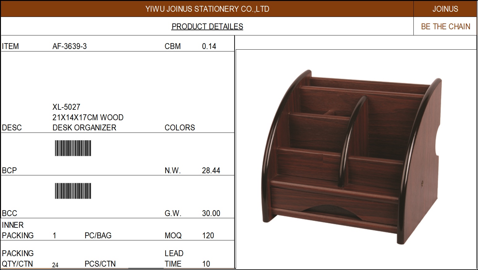 XL-5027 21X14X17CM WOOD DESK ORGANIZER AF-3639-3