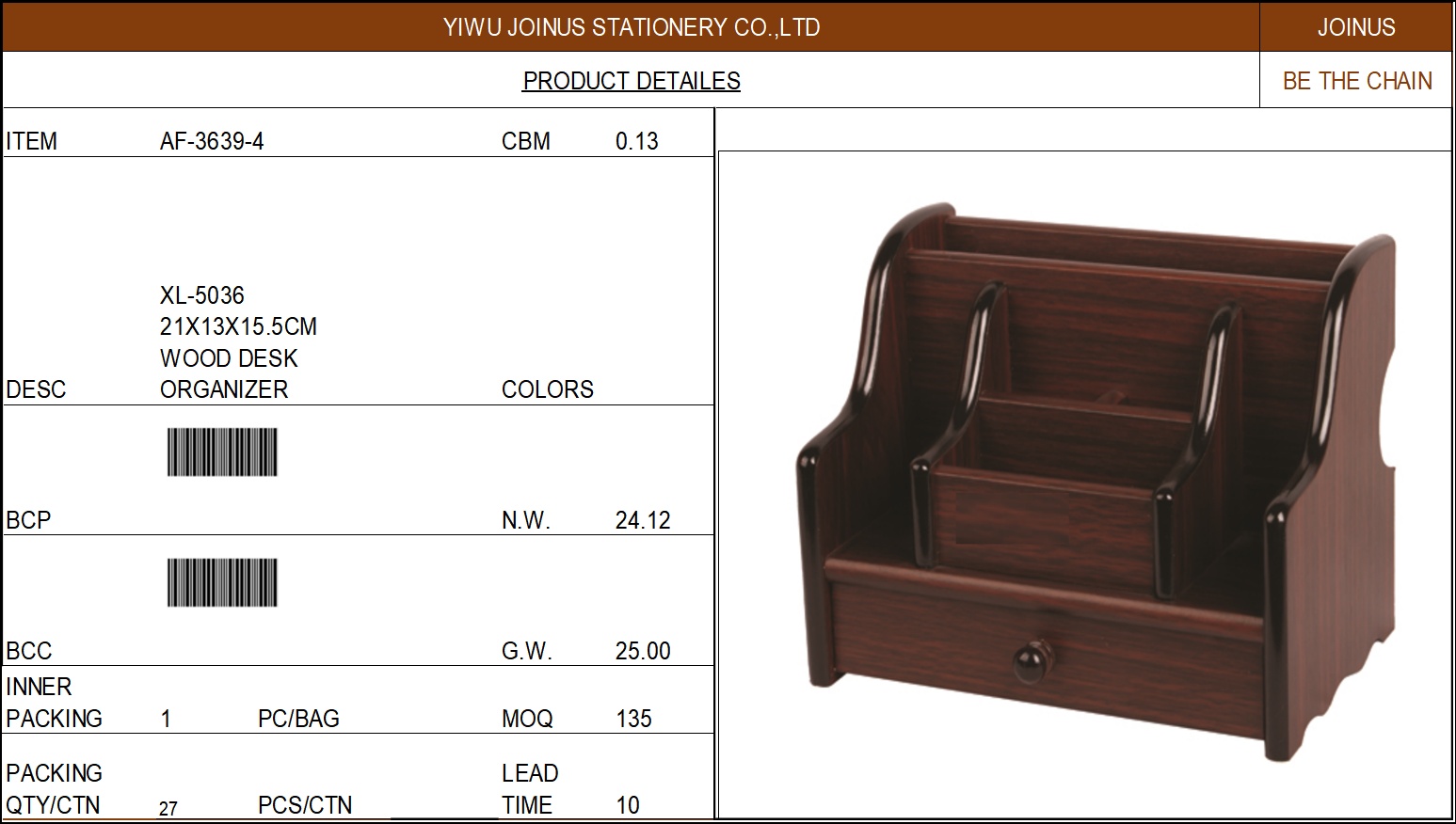 XL-5036 21X13X15.5CM WOOD DESK ORGANIZER AF-3639-4