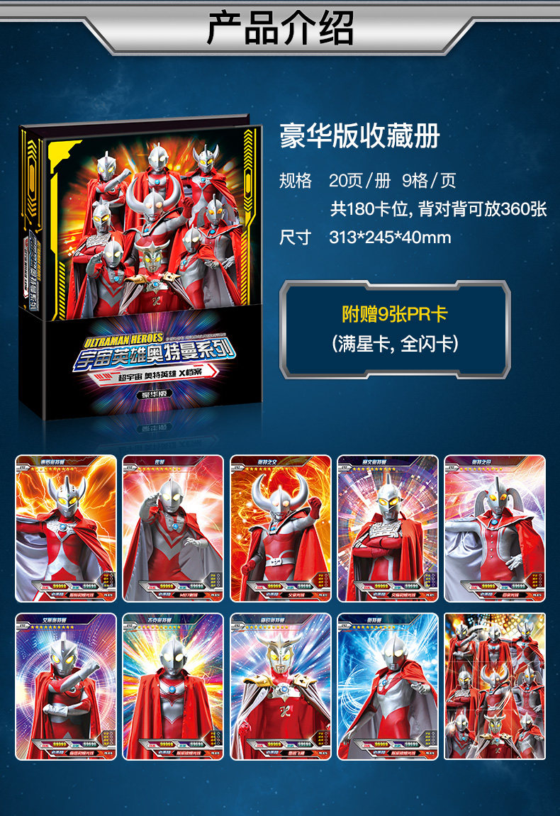 | luxury full flash edition 15 packs 120 pieces in total + collection book (full star card for free): genuine ultraman card | CN¥ 56.22 | 733 piece available |