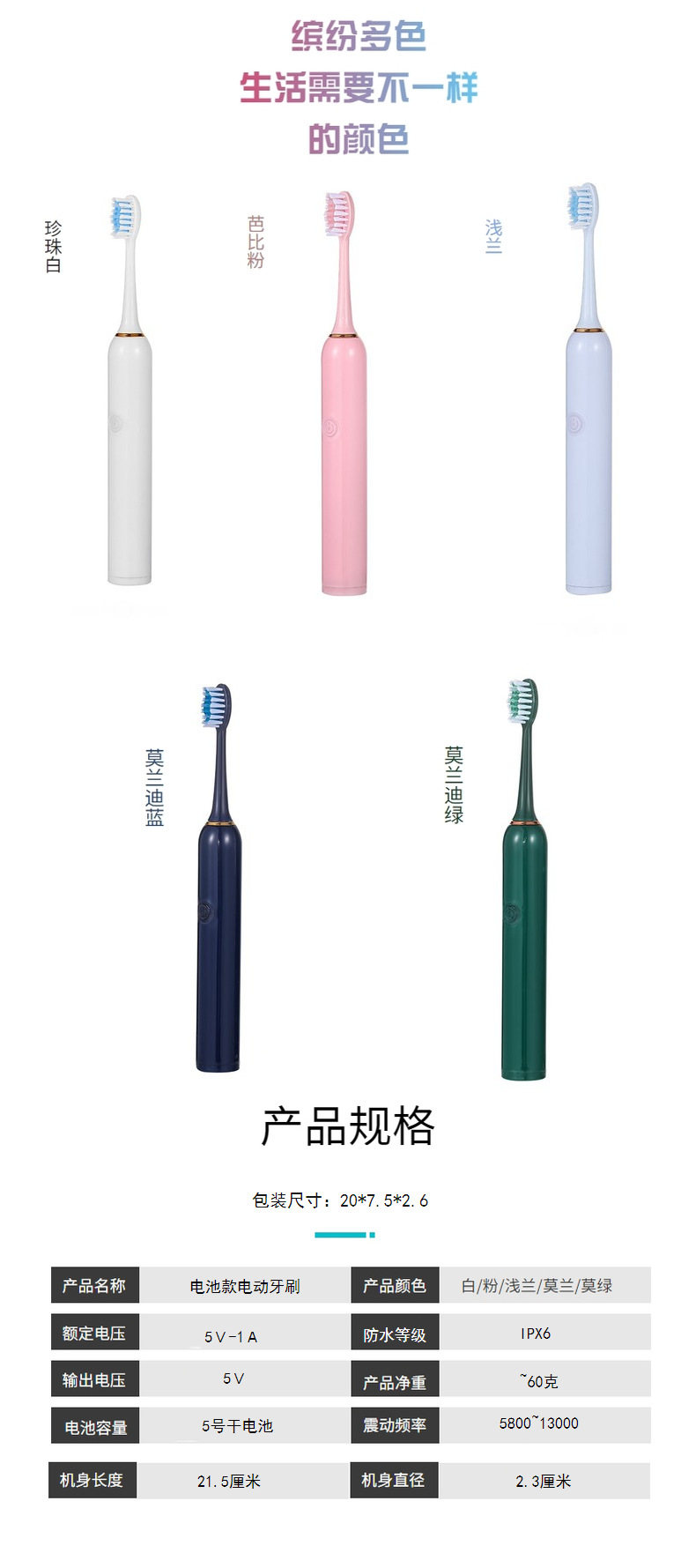 Cross-Border Adult Soft Hair Electric Toothbrush Non-Rechargeable Sonic Household Couple Electric Toothbrush Wholesale